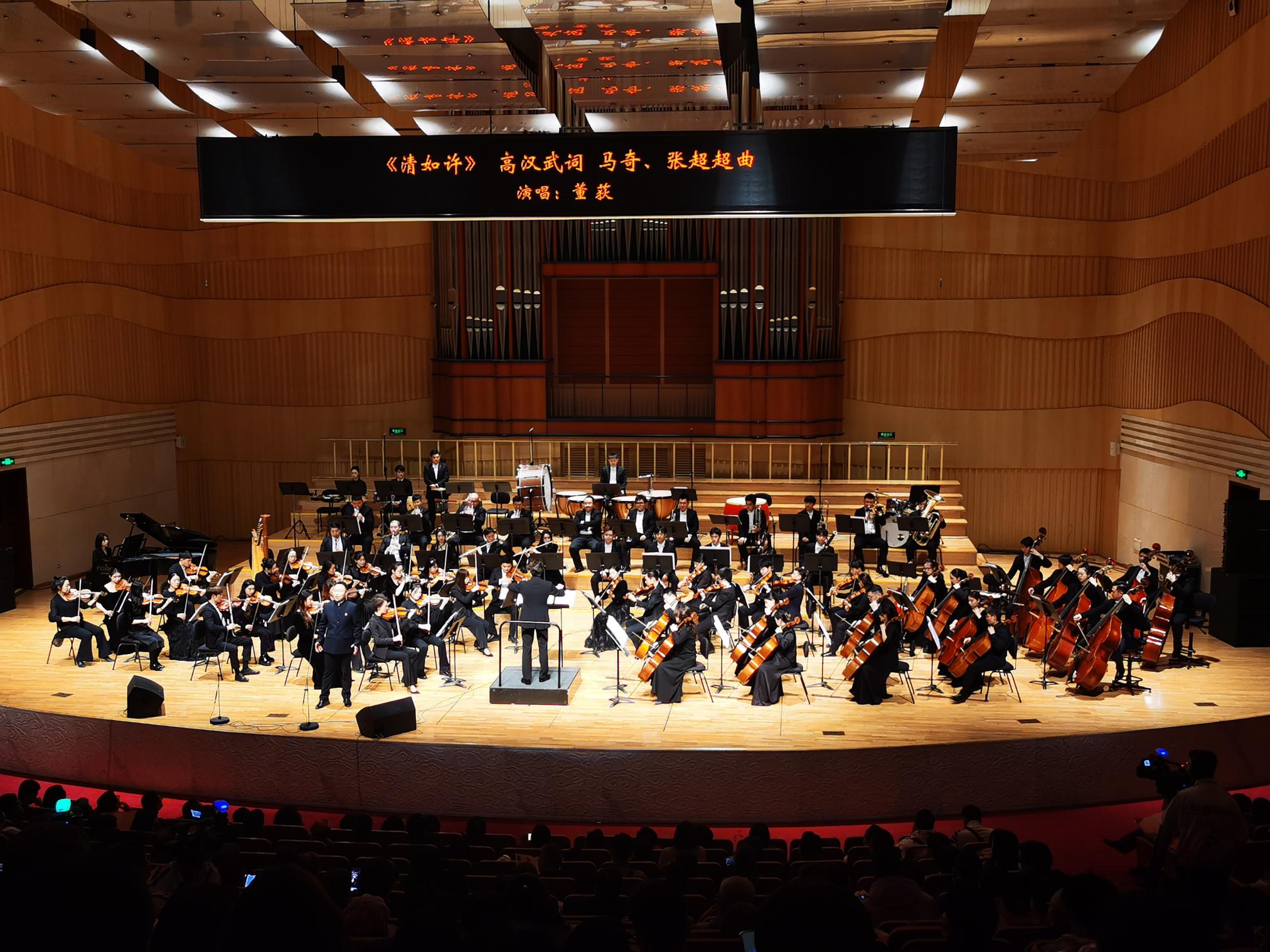 本网讯(陈星/文 马奇/图)12月25日晚,“黄河之滨音乐周”暨迎新年原创新作品交响音乐会在河南艺术中心音乐厅举办,音乐会选取河南省近年来新作的传唱度高、可听性强的优秀歌曲进行演出。其中,由新葡萄官网音乐学院院长马奇和安阳师范学院教师张超超作曲,湖南籍词作家高汉武作词的原创歌曲《清如许》入选其中。