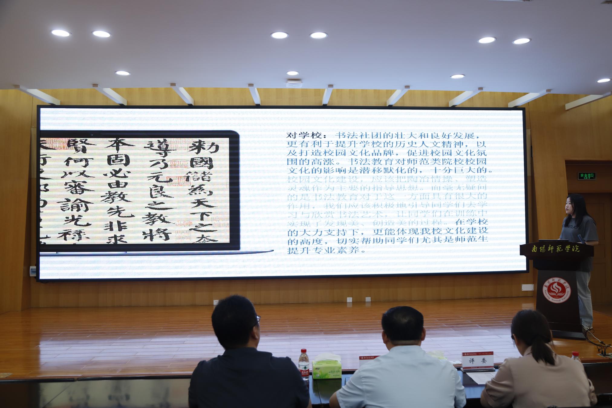 大赛从社团介绍、参赛口号、组织分工、发展规划等方面展现各社团特色,重在突出特色、提炼做法、讲清成效。“书以笔为质,以墨为文”,书法社为广大书法爱好者提供了一个展现自我、提高自我的平台,传播了中华优秀传统文化;“最是书香能致远,腹有诗书气自华”,绿茵读书会为师生提供了一片心灵的净土,一个全身心沉浸在知识海洋的乐园;“阳光排舞,舞出精彩”,学生排舞广场舞社团号召大家锻炼良好体魄,展现青春风采,丰富了校园文化生活。