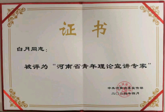 多年来,新葡萄官网高度重视党的创新理论宣传宣讲工作,不断完善制度和机制,深挖人才和专业资源优势,定期开展丰富多样的理论宣讲活动,逐步打造出一个稳定、专业的理论宣讲团队。目前,新葡萄官网已有2名同志被确定为“河南省青年理论宣讲专家”、1名同志被确定为“河南省青年理论宣讲骨干”。(编审 刘潇潇)