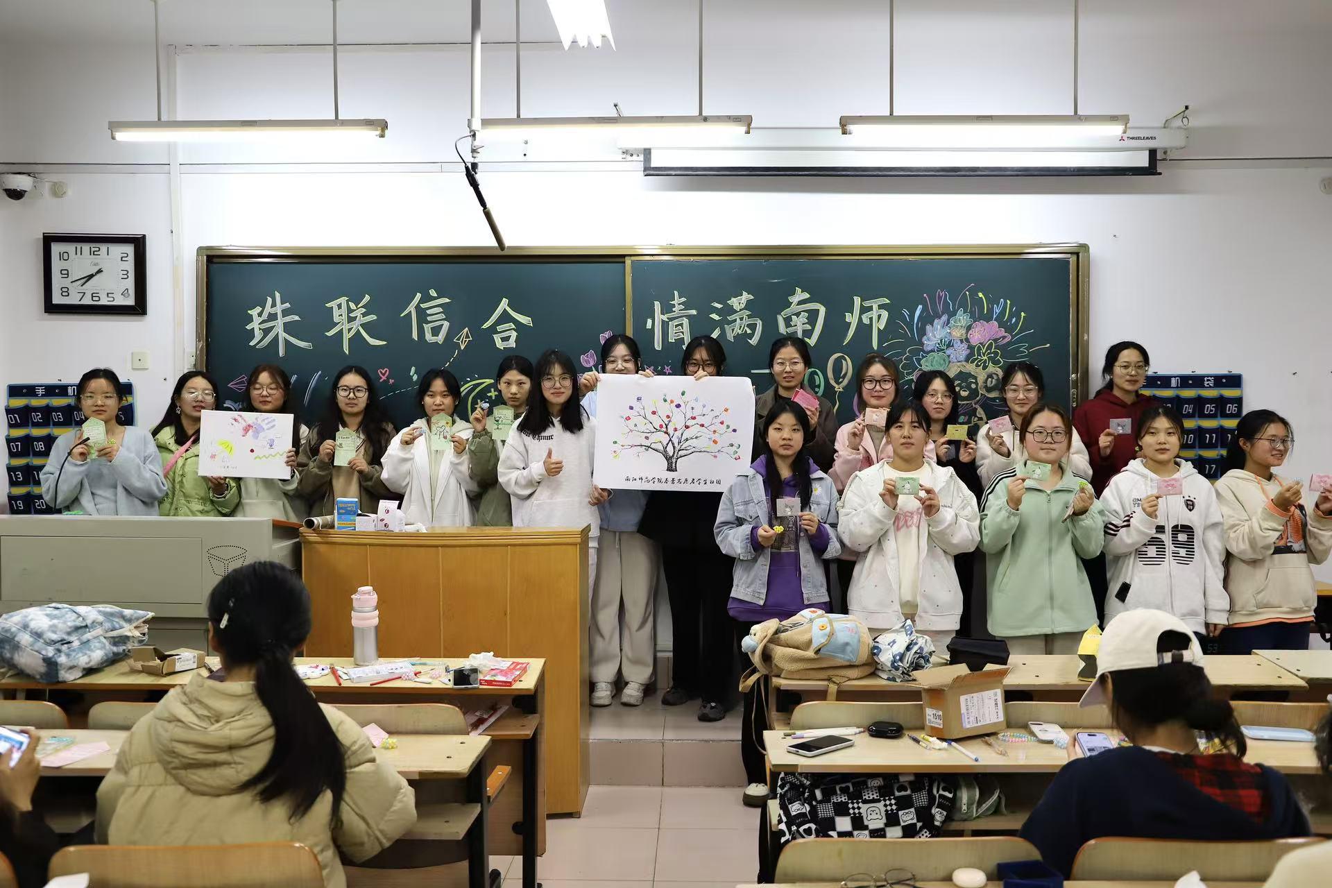 11月15日,手工艺社团联合春蕾志愿者学生社团于逸夫楼S507、S508室开展“珠联信合,情满南师”社团联合活动。社团成员在明信片上写下对考研学子的寄语、绘制创意涂鸦,一句句真挚的话语,一幅幅生动的图案,传递着满满的正能量。社团指导老师充分肯定了大家的创作热情,并对2025届考研学生献上祝福,希望他们能坚定考研信心,书写辉煌未来。