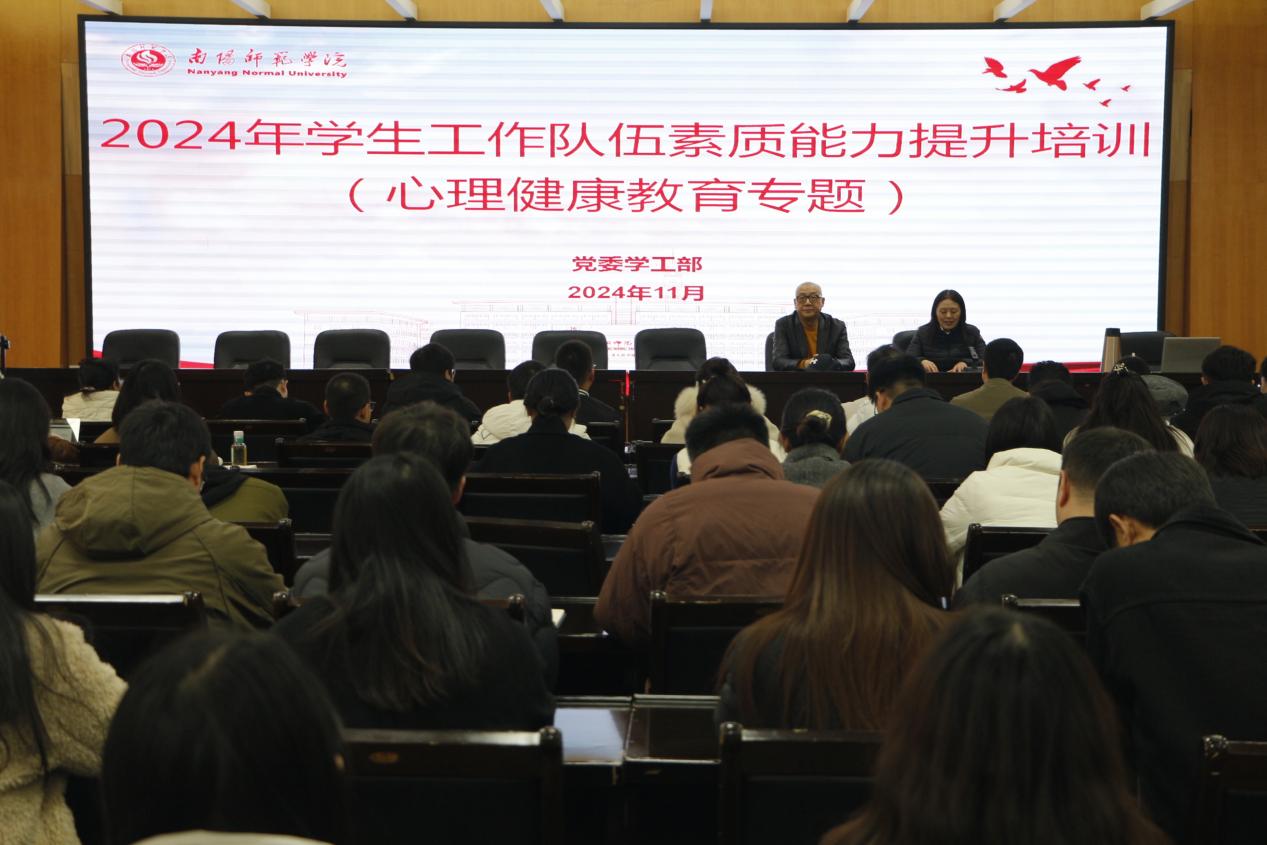 本网讯(孙培蕾/文 郭子源/图)11月26日下午,新葡萄官网在科技大楼三楼会议室举行2024年学生工作队伍素质能力提升心理健康教育专题培训会。本次培训会由国家职业资格心理咨询师标准制定专家组秘书长冯耘教授主讲,各学院团委(副)书记、全体辅导员参加。会议由学生发展中心(心理健康教育与咨询中心)副主任王晓红主持。