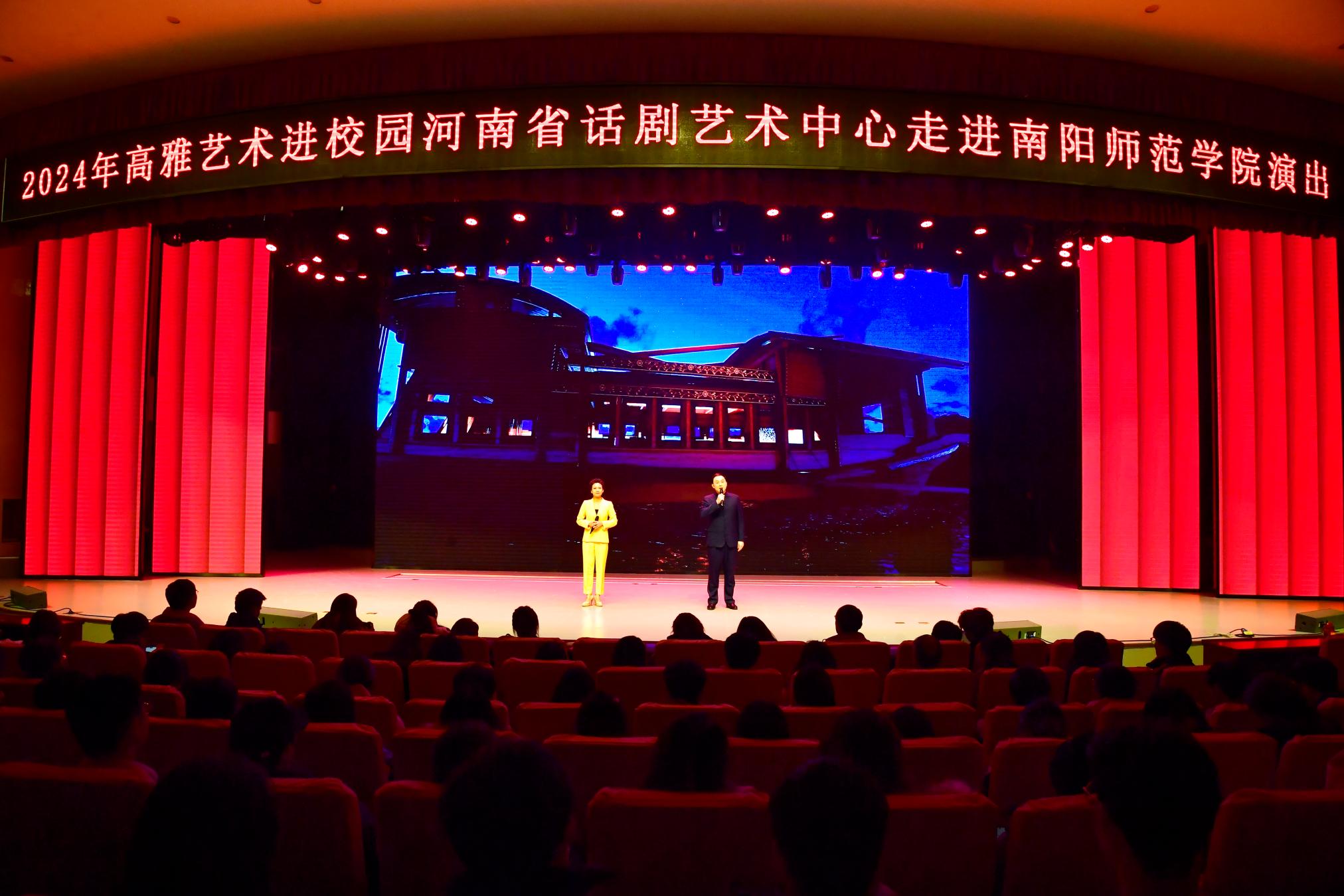 本网讯(张杰/文 张琳瑶 张子昂/图)12月2日,由河南省教育厅、河南省文化和旅游厅、河南省财政厅共同主办,河南省话剧艺术中心表演的“高雅艺术进校园”活动在新葡萄官网音乐厅举行。本次活动包含话剧小品专场与诗歌朗诵会两场演出。