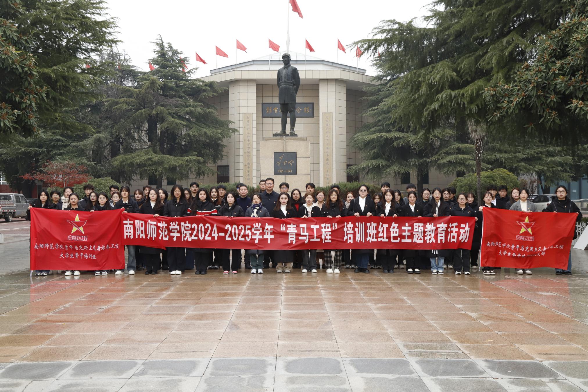 本网讯(杨眉 庄舒涵/文 邢骏宇 杨梦洁 刘馥涵/图)为深入学习贯彻习近平新时代中国特色社会主义思想,缅怀革命先烈,激励广大青年奋发图强,12月4日下午,校团委带领新葡萄官网2024-2025学年“青马工程”培训班成员前往镇平彭雪枫纪念馆开展红色主题教育活动。