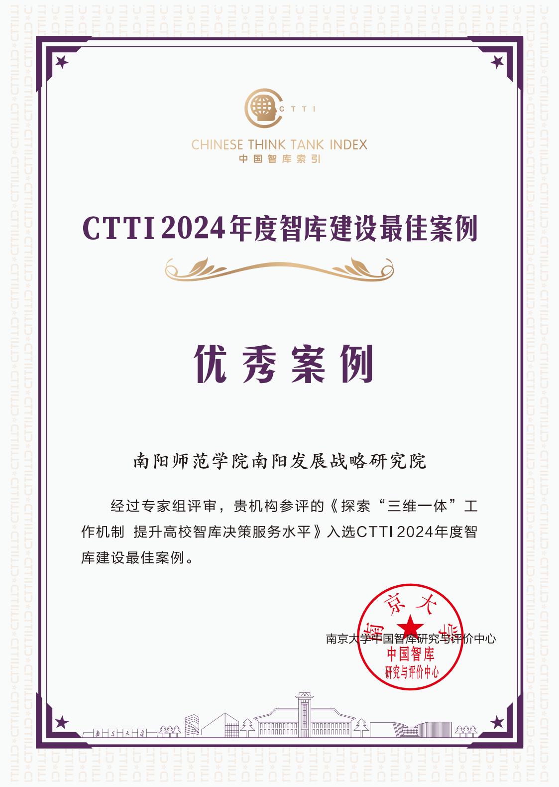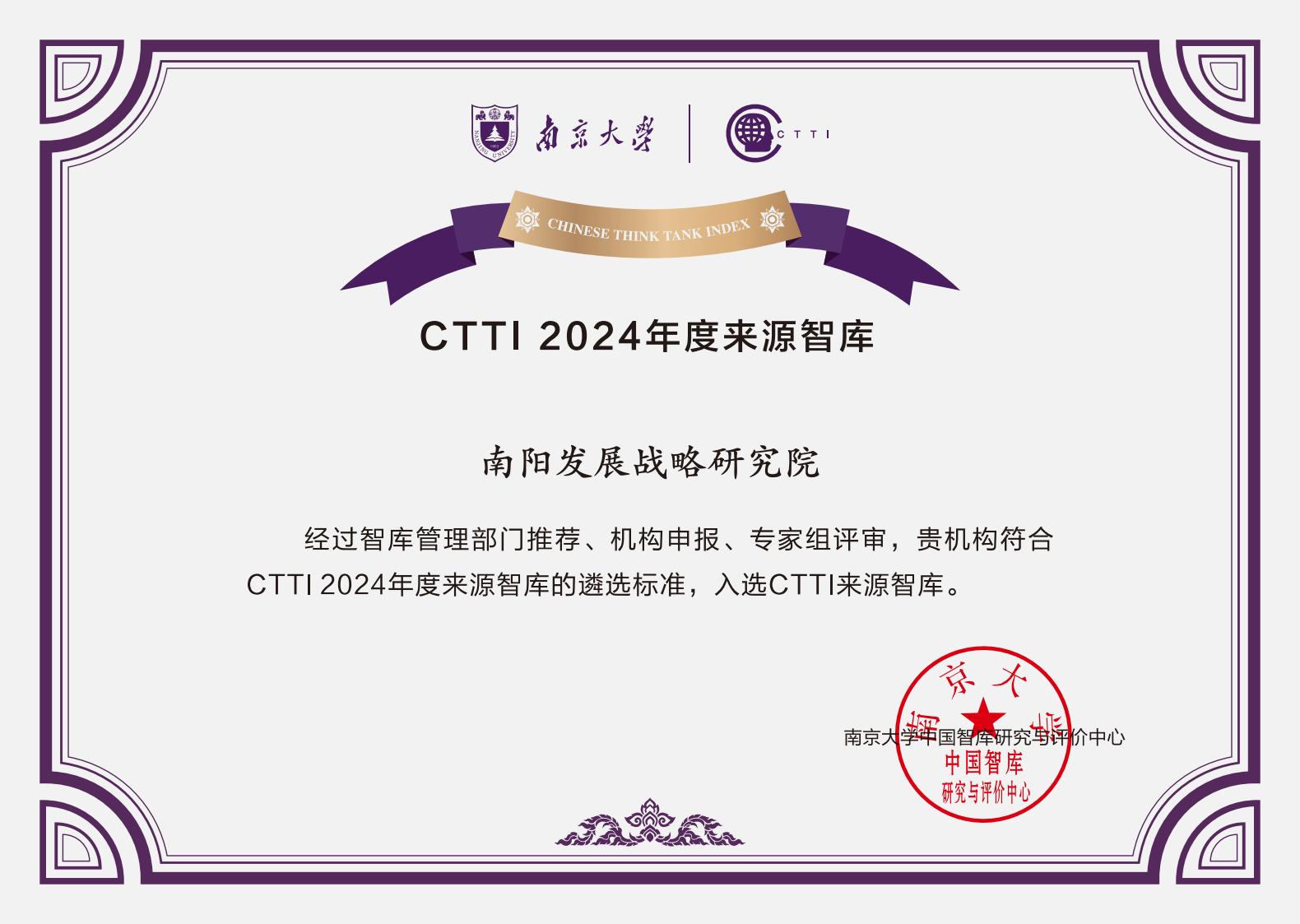 南京大学中国智库研究与评价中心发布的中国智库索引(CTTI)是国内目前反映智库影响力和知名度最权威的检索工具。2024年度CTTI 来源智库增补工作对智库的基础建设、课题与项目、决策咨询、理论创新和舆论引导、内部治理、个性特色等指标均做出了更高的要求。南阳发展战略研究院入选中国智库索引(CTTI)来源智库,标志着新葡萄官网智库建设工作得到了国内权威智库评价机构的认可。(编审 刘潇潇)