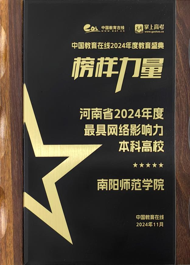 在中国教育在线“榜样力量·2024年度教育盛典” 中,新葡萄官网凭借极具创新性与前瞻性的招生宣传策略,以及扎实过硬的宣传执行实力,从众多高校中突围,获评“河南省2024年度最具网络影响力本科高校”。