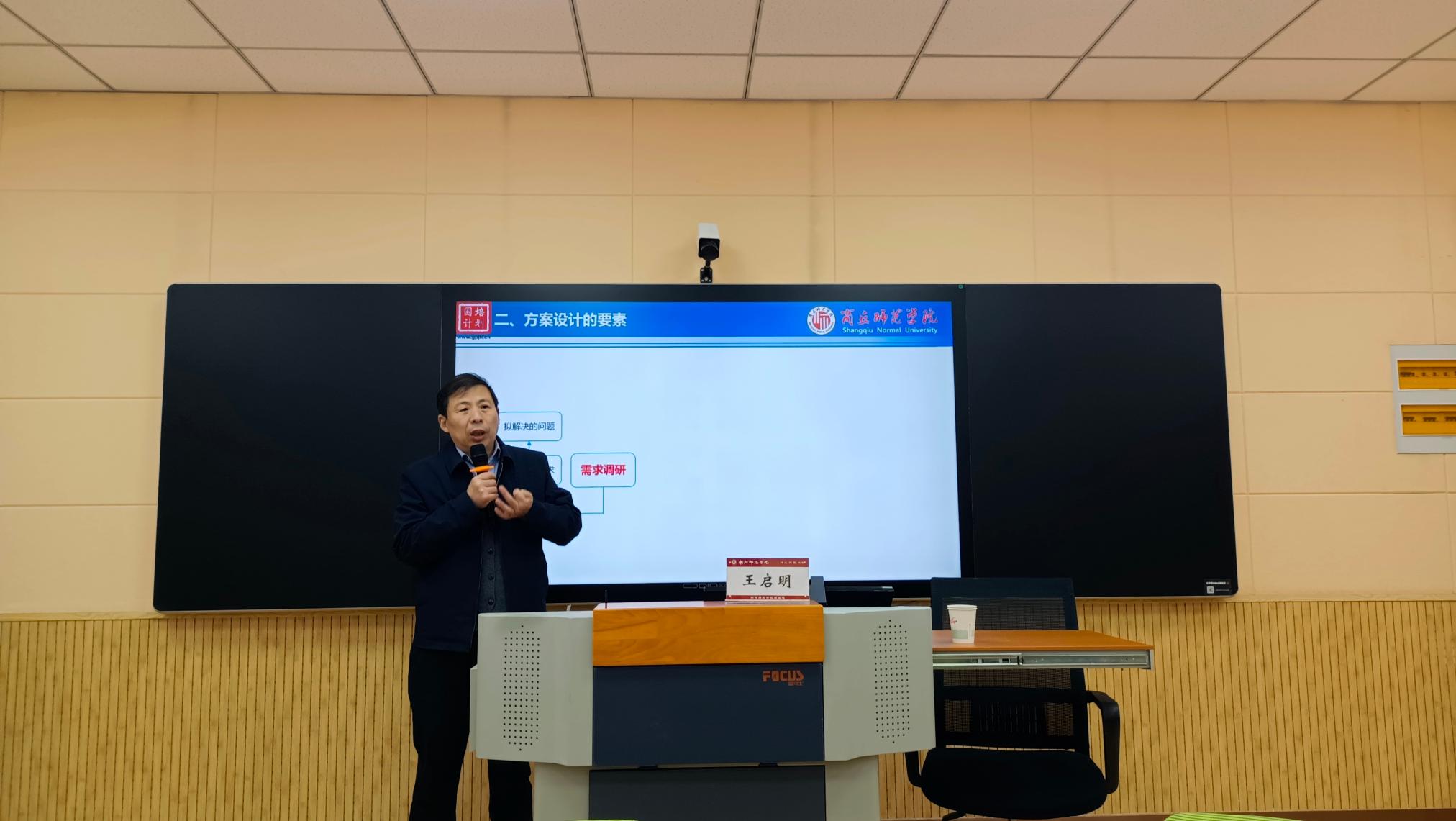 王启明教授从项目规划与需求、方案设计的要素、问题与改进建议三个方面对“国培计划”项目实施方案设计中的常见问题进行了详细分析,并给出了针对性建议。王教授重点讲解了申报书的撰写,从培训需求调研、培训主题凝炼、培训目标设定、培训课程设置等方面结合具体案例进行了深入浅出地讲解,还针对国培项目申报书撰写对参会人员进行了一对一深入指导。(编审 刘潇潇)