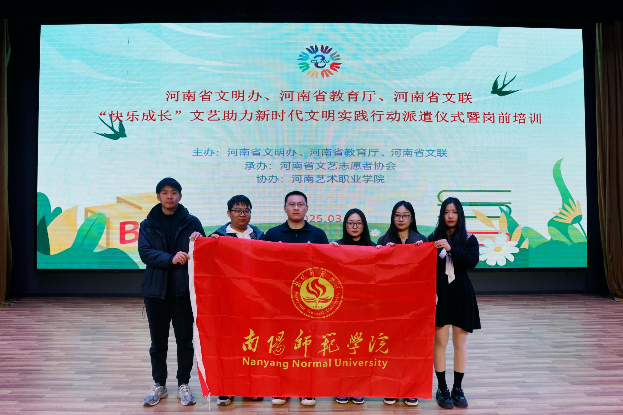 本网讯(关若村/文 冯一珺/图)3月21日上午,由河南省文明办、河南省教育厅、河南省文联主办的2025年上半年“快乐成长”文艺助力新时代文明实践行动派遣仪式暨岗前培训在河南艺术职业学院举行。河南省委宣传部二级巡视员葛卫华、河南省文联副主席米闹出席会议,来自郑州大学、新葡萄8883官网AMG等13所高校的137名文艺支教志愿者参加。