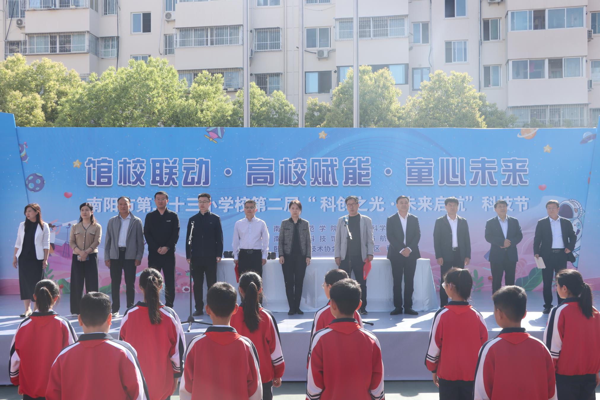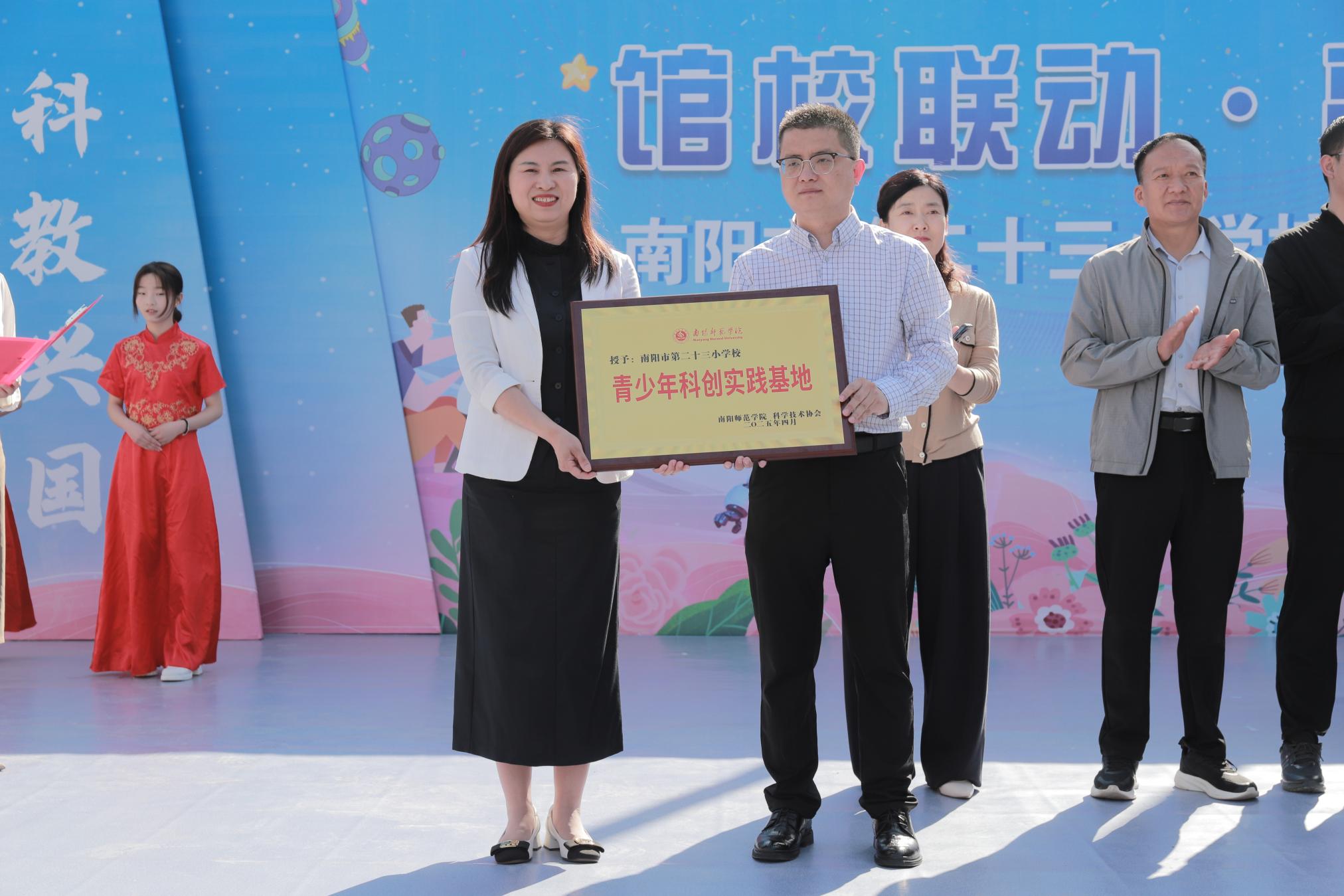 开幕式上,新葡萄8883官网AMG与南阳市科技馆共同为该校授予“青少年科创实践基地”“河南省馆校合作校”双牌匾,推动校地科教协同迈入新阶段。