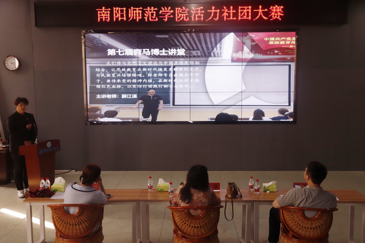 5月21日,“活力社团大赛”在卧龙众创空间4103教室举行。此次大赛由校团委主办、社团联合会承办,各学院22个社团团队参赛。各社团从社团介绍、参赛口号、组织分工到发展规划等多个维度,全方位展现自身特色。经专业评审,排舞社团、青年马克思主义理论学习研究社团、雨佳志愿协会荣获一等奖;书法社、青水会学生社团、邓州编外雷锋营、星缘天文社、智汇工坊实验室荣获二等奖;学生教师技能发展协会、茶艺社、绿茵读书会、戏曲社、大学生调查研究社团、AI化学社、汉文化研究协会社团荣获三等奖。(编审刘潇潇)