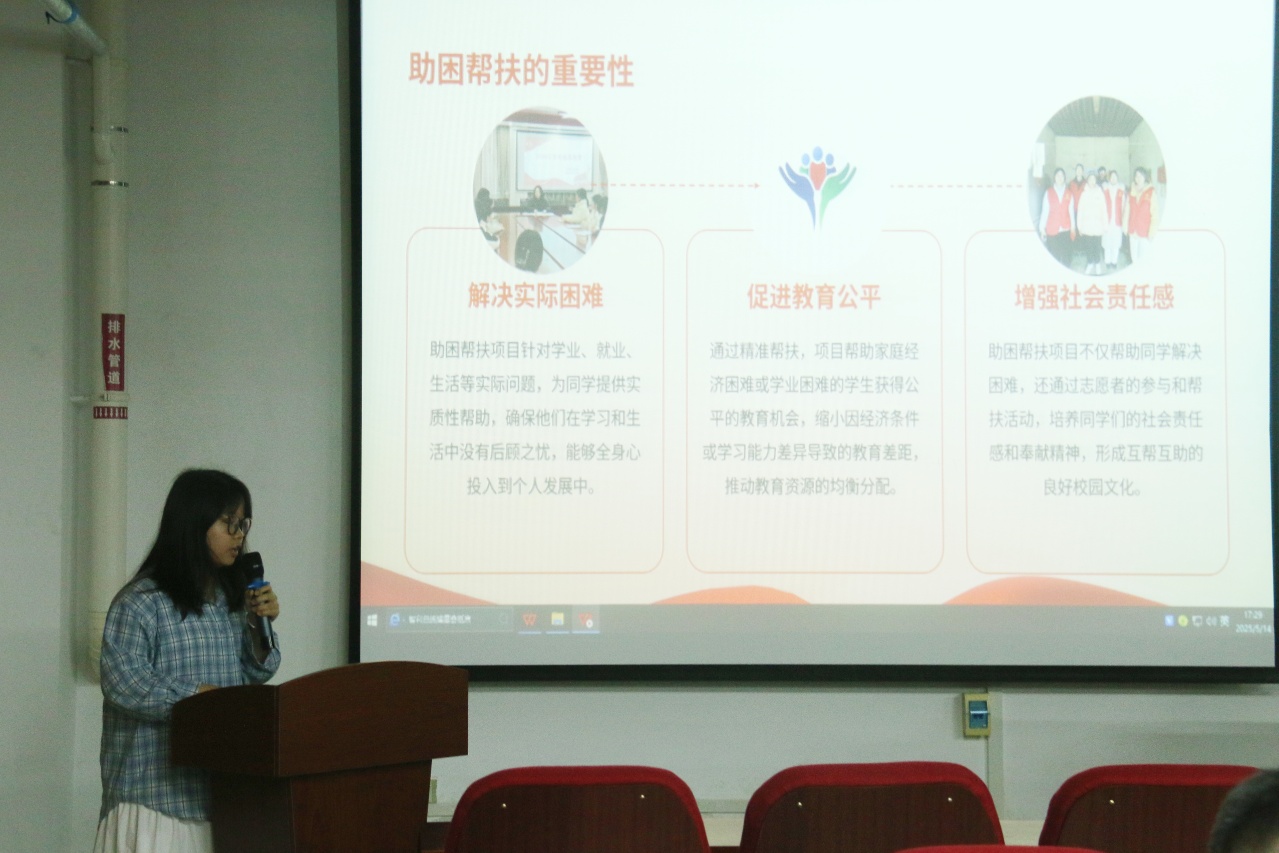 5月14日,“我为同学做实事”项目大赛在卧龙众创空间4103教室举行。此次大赛由校团委主办,各学院22个项目组参赛。各参赛团队围绕项目实用性、覆盖面、影响力进行详细阐述,突出亮点、总结经验、展示成果。经专业评审,项目“微光聚爱,筑梦远航”“星火相传,宣讲育人”“以史为鉴践于行 筑梦扬帆启新程”荣获一等奖;“同行逐梦路,实事暖人心”“助困帮扶:为同学办实事,助力成长成才”“阳光晨练我为同学做实事”“‘启航助创’毕业生就业创业项目”“应急安全小课堂”荣获二等奖;“‘八段锦’我为同学做实事”“爱心送水,助力体测”“青春力行·筑梦实践”“‘情暖同窗 诚就美好’系列实践活动”“心理朋辈辅导”“数载明灯,学海共航”“‘心灵之旅’创意心理活动”荣获三等奖。