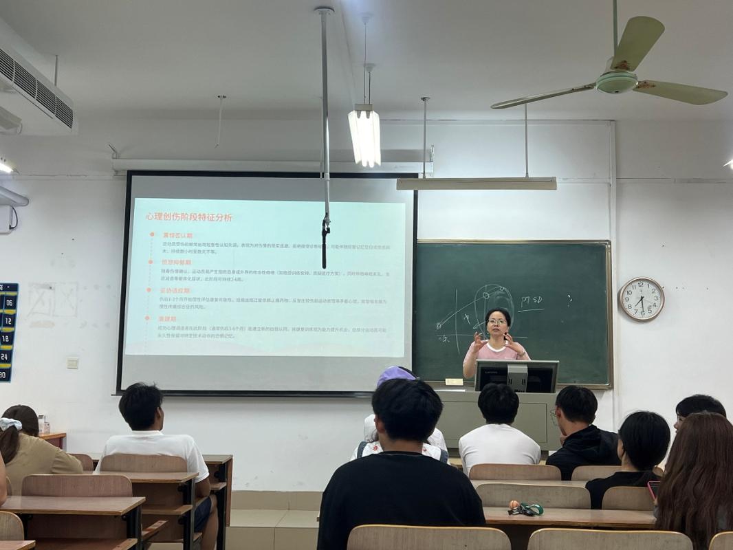 6月4日,由体育学院承办的“健体护心,安全同行”心理主题活动在艺术楼313教室举行。活动由体育学院心理专干教师万力芳主讲。万力芳通过普及运动损伤预防和心理健康相关知识,不仅帮助学生掌握急救技能, 还可以更好地管理情绪、重建信心,以积极心态应对挑战,将运动转化为提升身心健康的双向助力,为学生的健康成长保驾护航。