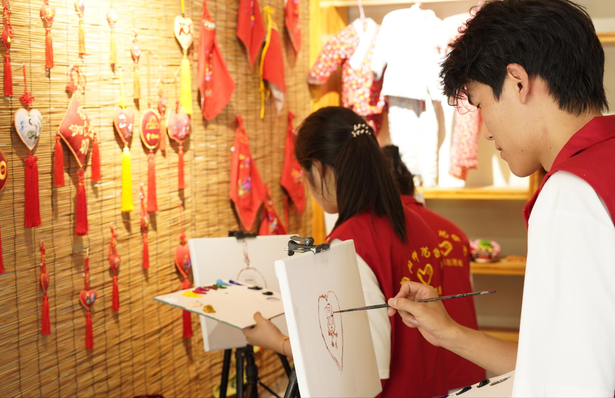 7月7日,由校团委相关负责同志及20名学生志愿者组成的乡村振兴实践促进团前往社旗县文化周庄开展“艺术赋能乡村发展,美育助力文化振兴”暑期“三下乡”社会实践活动。实践队员们走进周庄,观摩香草制作、布鞋编织等非遗展品,并以非遗元素为创作灵感,将传统纹样、工艺特色融入绘画作品,用画笔赋予非遗技艺青春表达。在红色文化展区,队员们通过毛泽东等革命先辈的珍贵史料和事迹讲解,感悟红色精神内核,从中汲取奋进力量。