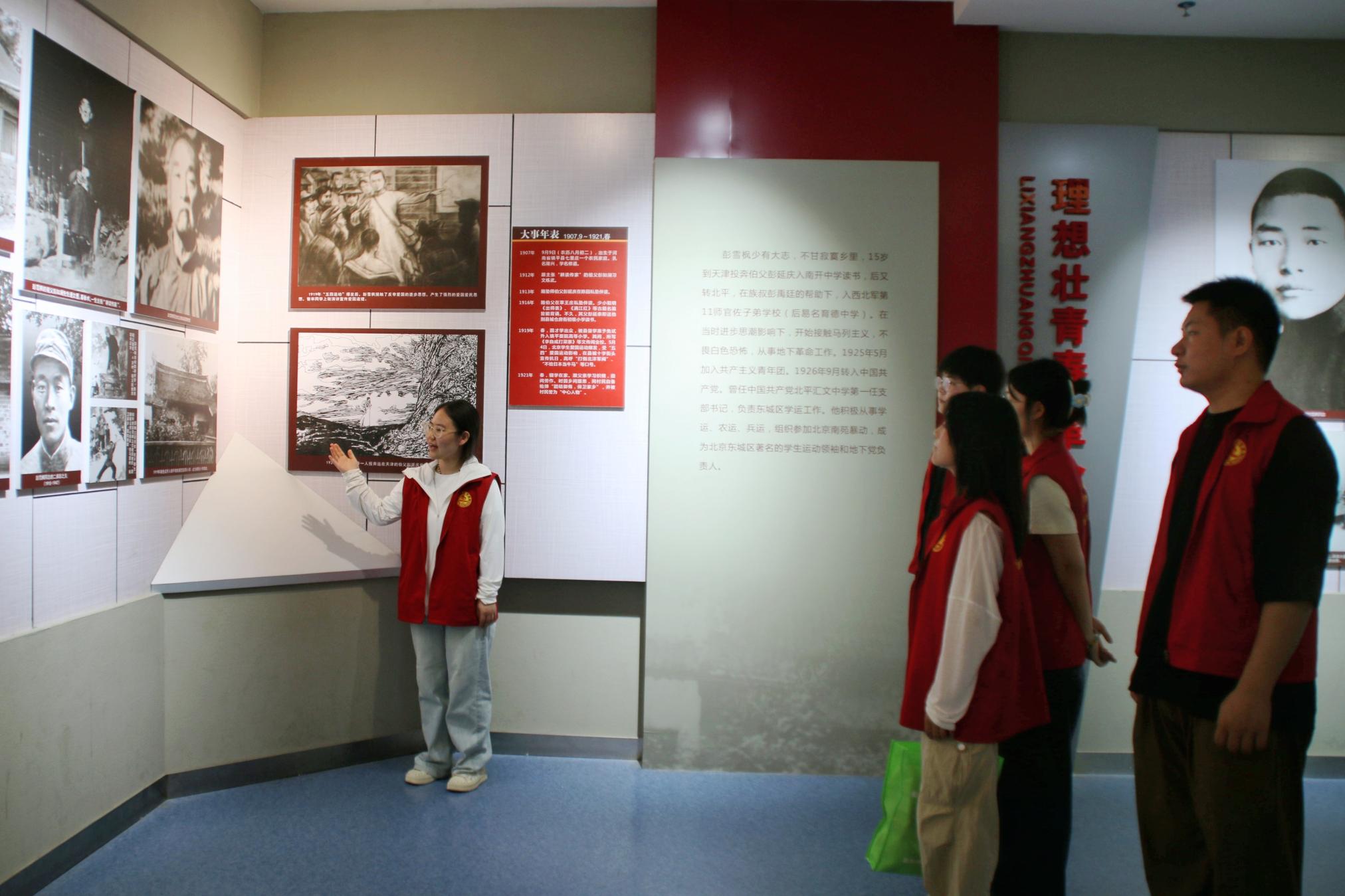 7月2日,地理科学与旅游学院“探寻红色印记 厚植爱国情怀”爱国主义教育实践团前往南阳市镇平县彭雪枫纪念馆开展暑期“三下乡”社会实践活动。志愿服务队员们在工作人员讲解下,认真聆听了每件展品背后的故事,通过历史文物、珍贵手稿、影像资料等,系统学习了彭雪枫将军投身革命、浴血奋战的光辉历程。参观战斗场景复原区时,队员们严格遵守展馆纪律,保持安全距离,沉浸式感受革命先辈在艰苦斗争中的坚定信仰。