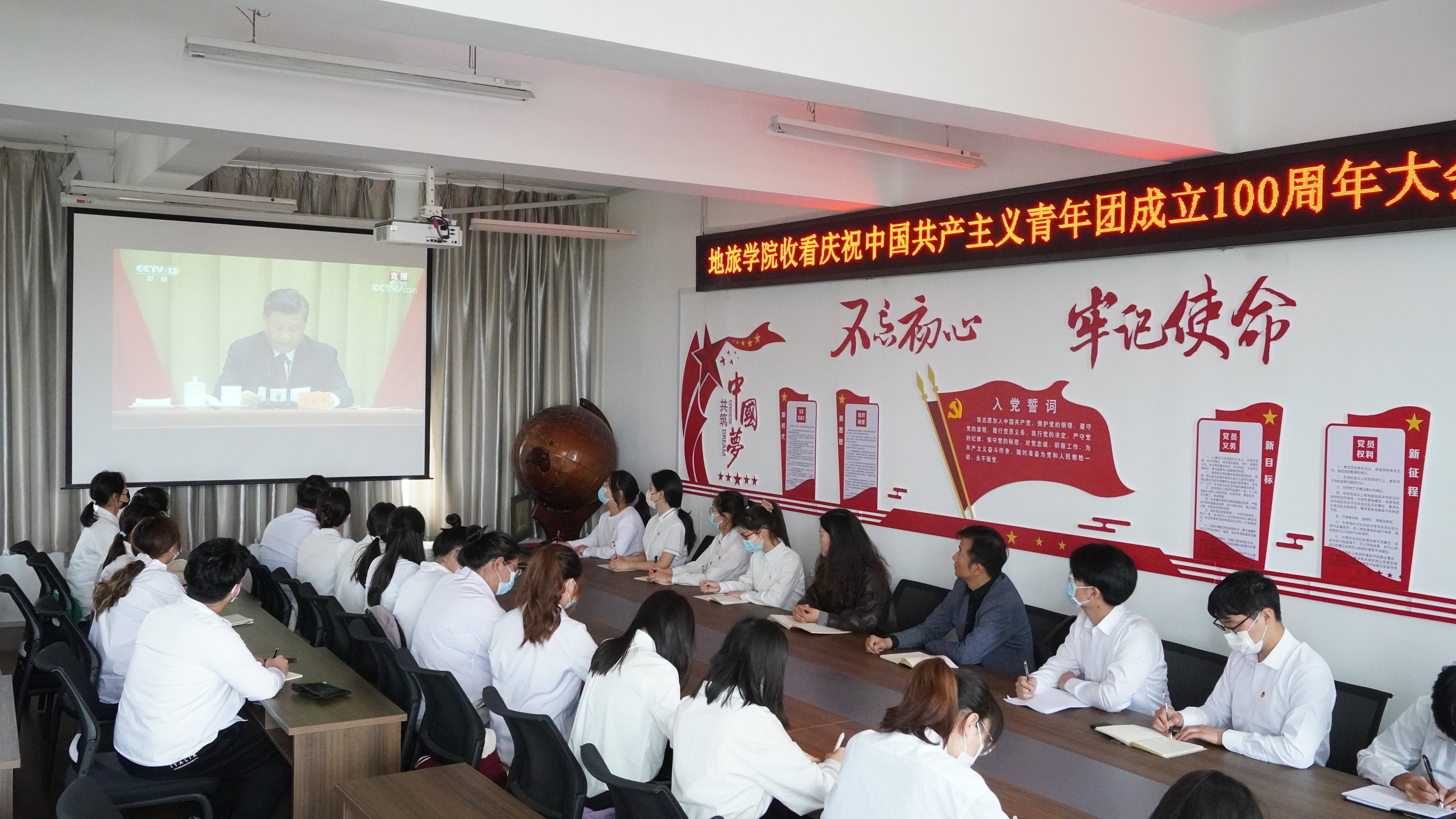 本网讯(杨眉/文 王杉/图)5月10日上午,庆祝中国共产主义青年团成立100周年大会在北京人民大会堂隆重举行。中共中央总书记、国家主席、中央军委主席习近平出席大会并发表重要讲话。为庆祝中国共产主义青年团成立100周年,引导广大青年团员传承红色基因、赓续精神血脉,提升学生综合素质水平,校团委组织新葡萄官网各级团组织按时收看直播。校党委副书记谢冰松、校团委全体成员、各学院团委书记、校学生会学生骨干代表和“青马工程”培训班成员代表在西区图书馆一楼报告厅集中观看直播,新葡萄官网21个学院分别组织团员青年们通过网络、电视等多种媒体形式,在报告厅、会议室、教室、宿舍等场所收听收看大会盛况。