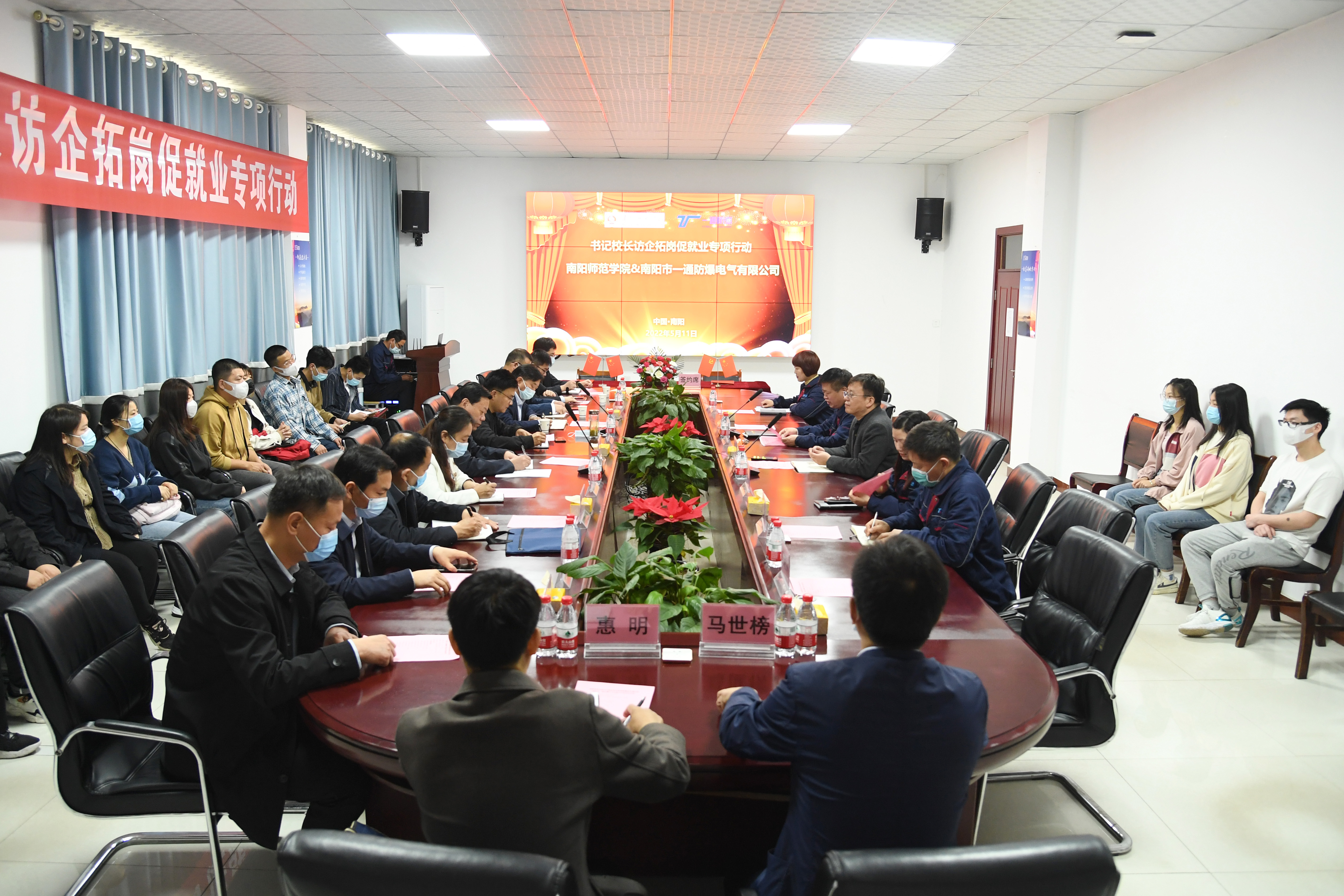 本网讯(陈晓阳/文 张坤毅/图)为深入贯彻落实访企拓岗促就业专项行动,拓展毕业生就业岗位,5月11日,校党委副书记谢冰松、副校长刘红林带领相关单位负责同志赴南阳市一通防爆电气有限公司开展访企拓岗促就业专项行动。