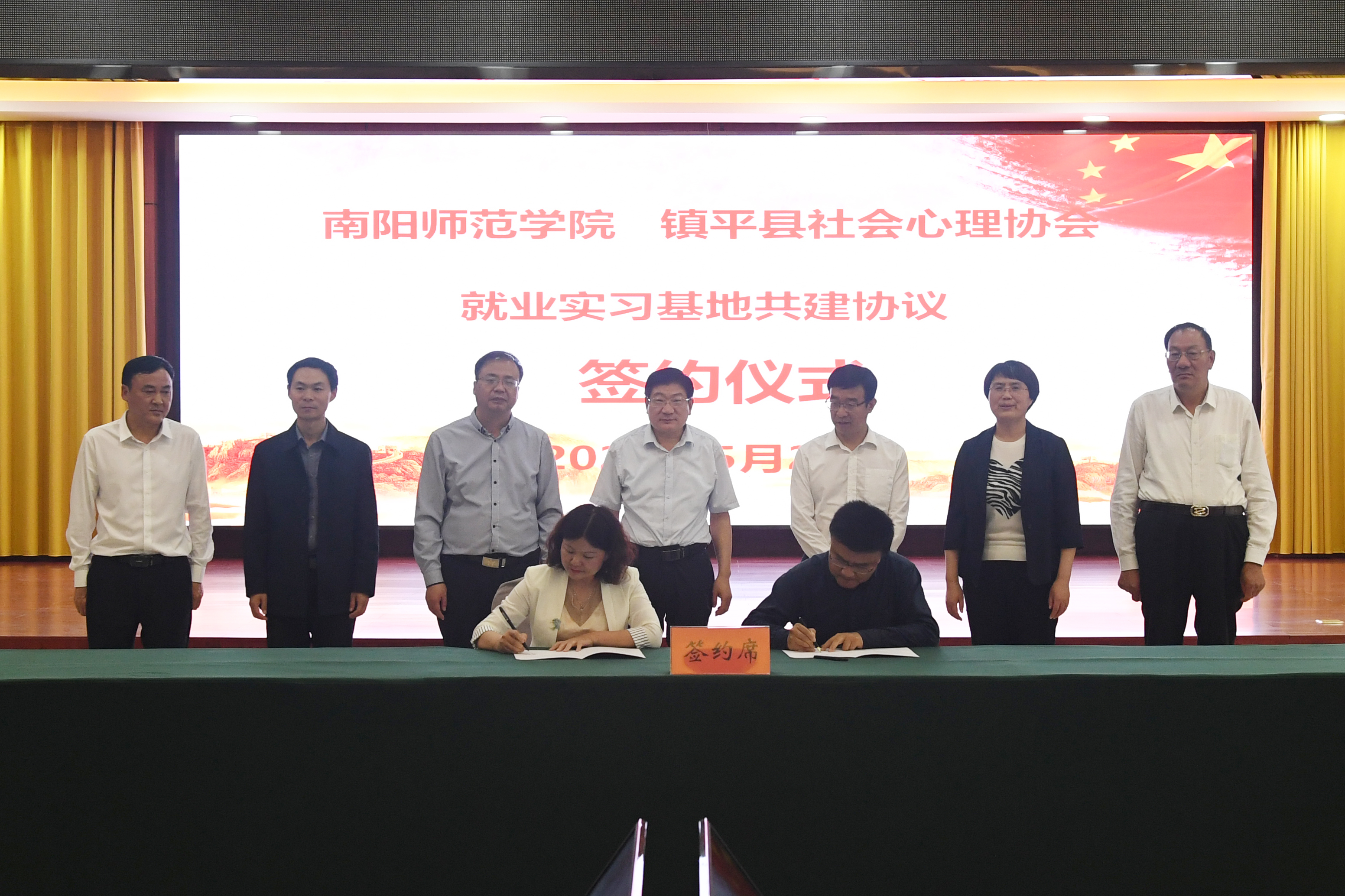 副校长刘红林与镇平县商务局、想念食品股份有限公司、镇平县社会心理协会签署《就业实习基地共建协议》。