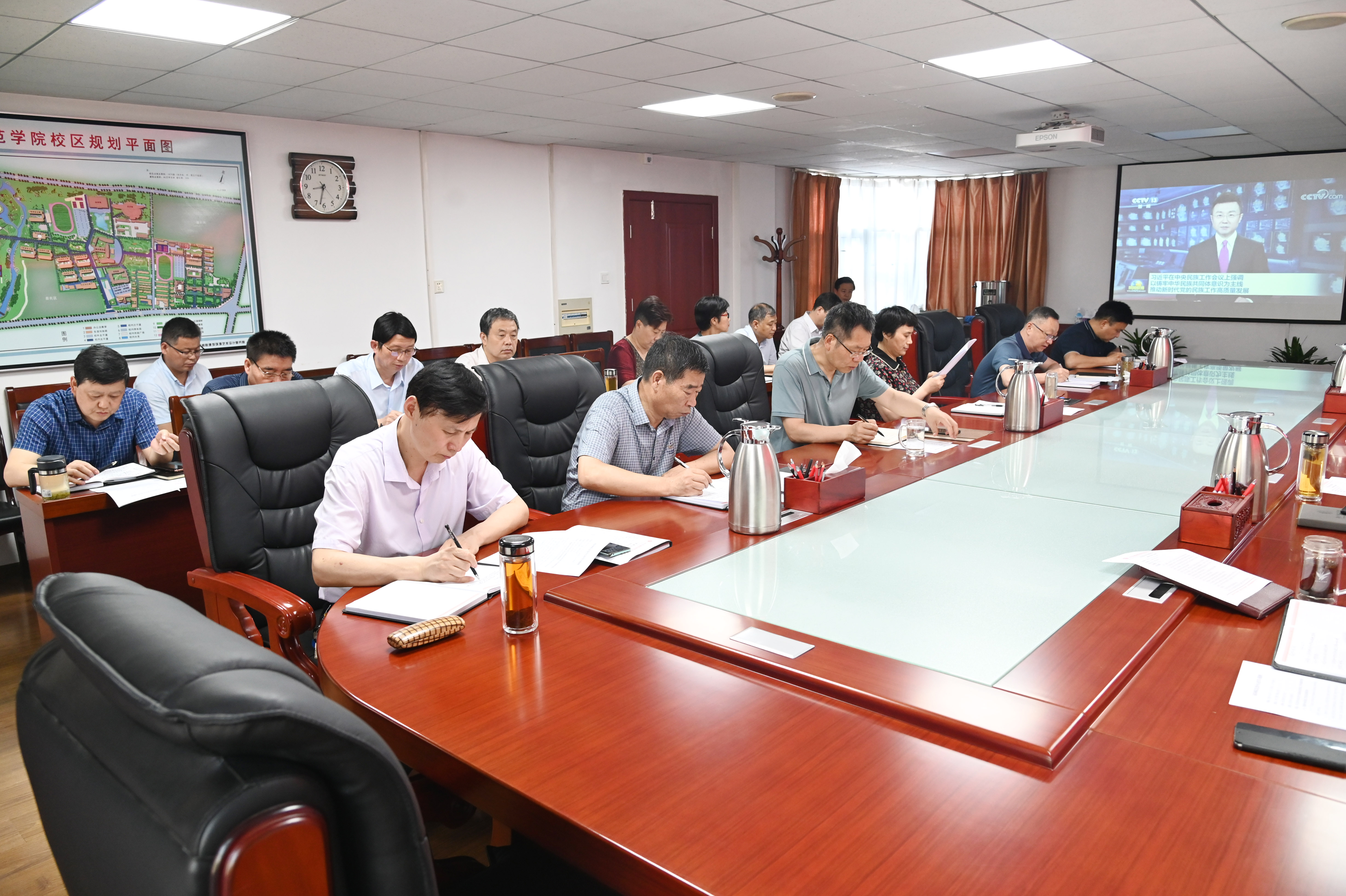 会上,校党委中心组全体成员认真观看了习近平总书记关于加强和改进民族工作重要讲话的视频资料,深入学习了习近平总书记关于加强和改进民族工作的重要思想的科学内涵、精神实质以及铸牢中华民族共同体意识的重大意义,并结合各自学习体会和分管领域进行了交流讨论。