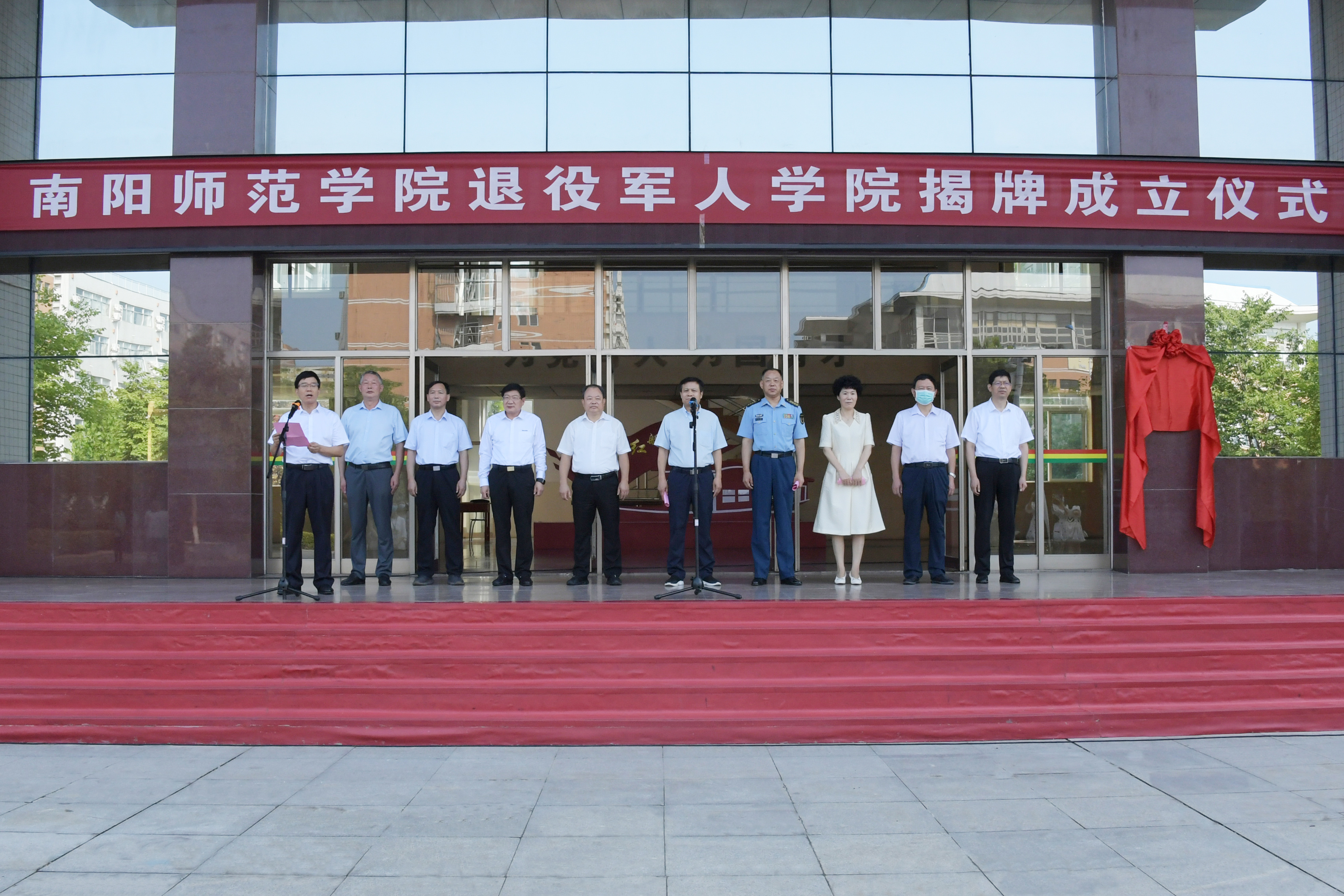 阿颖代表南阳市政府表示热烈祝贺,要树立标杆,融入大局、服务社会,发挥优势、担当作为,把南阳师院专业底蕴深厚、师资力量雄厚的学术优势,转化为退役军人教育助力经济社会高质量发展的胜势,努力为南阳副中心城市建设贡献力量,为新时代中原更加出彩贡献力量,以优异成绩迎接党的二十大胜利召开。