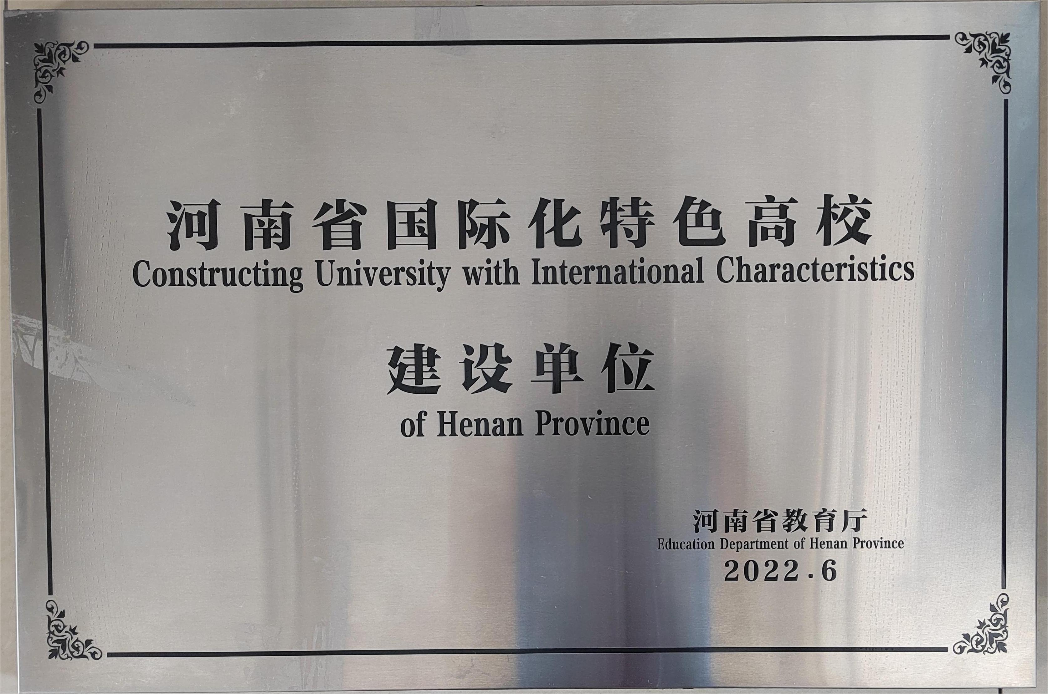 图:新葡萄官网被评选为河南省国际化特色高校建设单位
