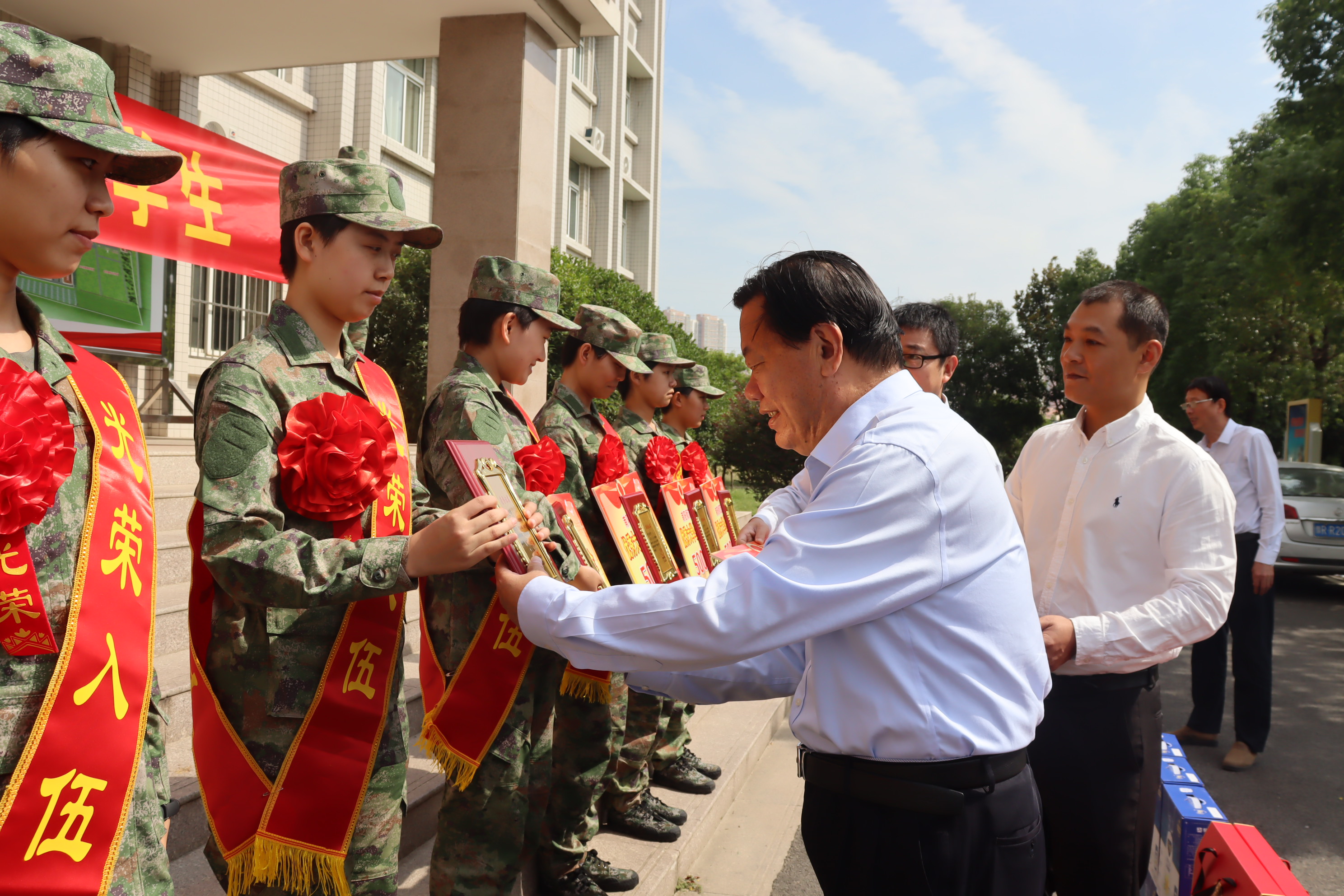 1.谢冰松为入伍新兵颁发荣誉证书和专项奖学金