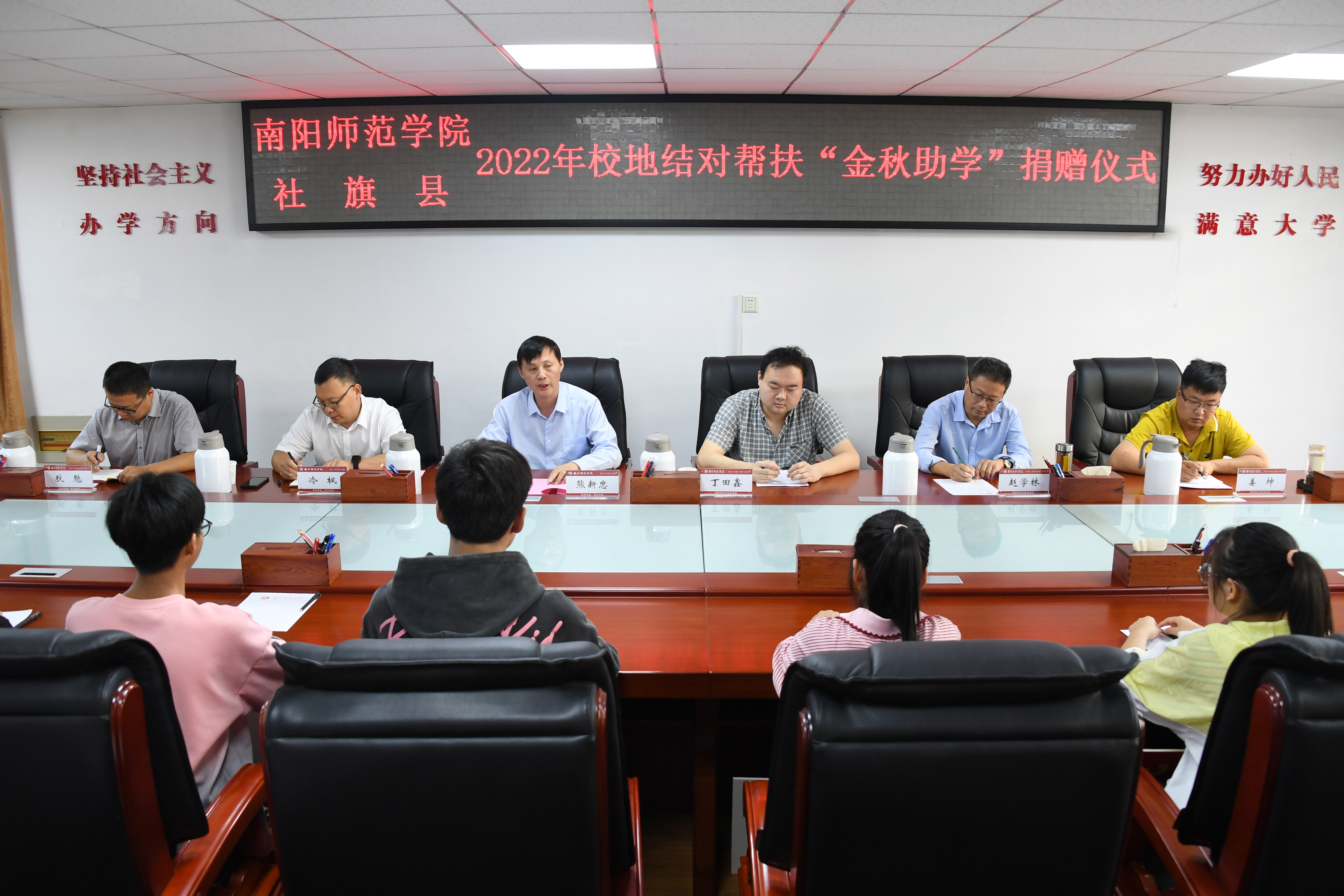 共青团社旗县委副书记丁田鑫对新葡萄8883官网AMG作为校地结对帮扶单位对社旗县教育事业的关心和支持表示衷心的感谢。新葡萄8883官网AMG连续五来年筹措资金举行“金秋助学”活动。这种关注弱势群体、关心公益事业的义举,不仅体现了南阳师院各位领导高度的社会责任感,更反映出关爱社会的无私奉献和关爱互助精神。