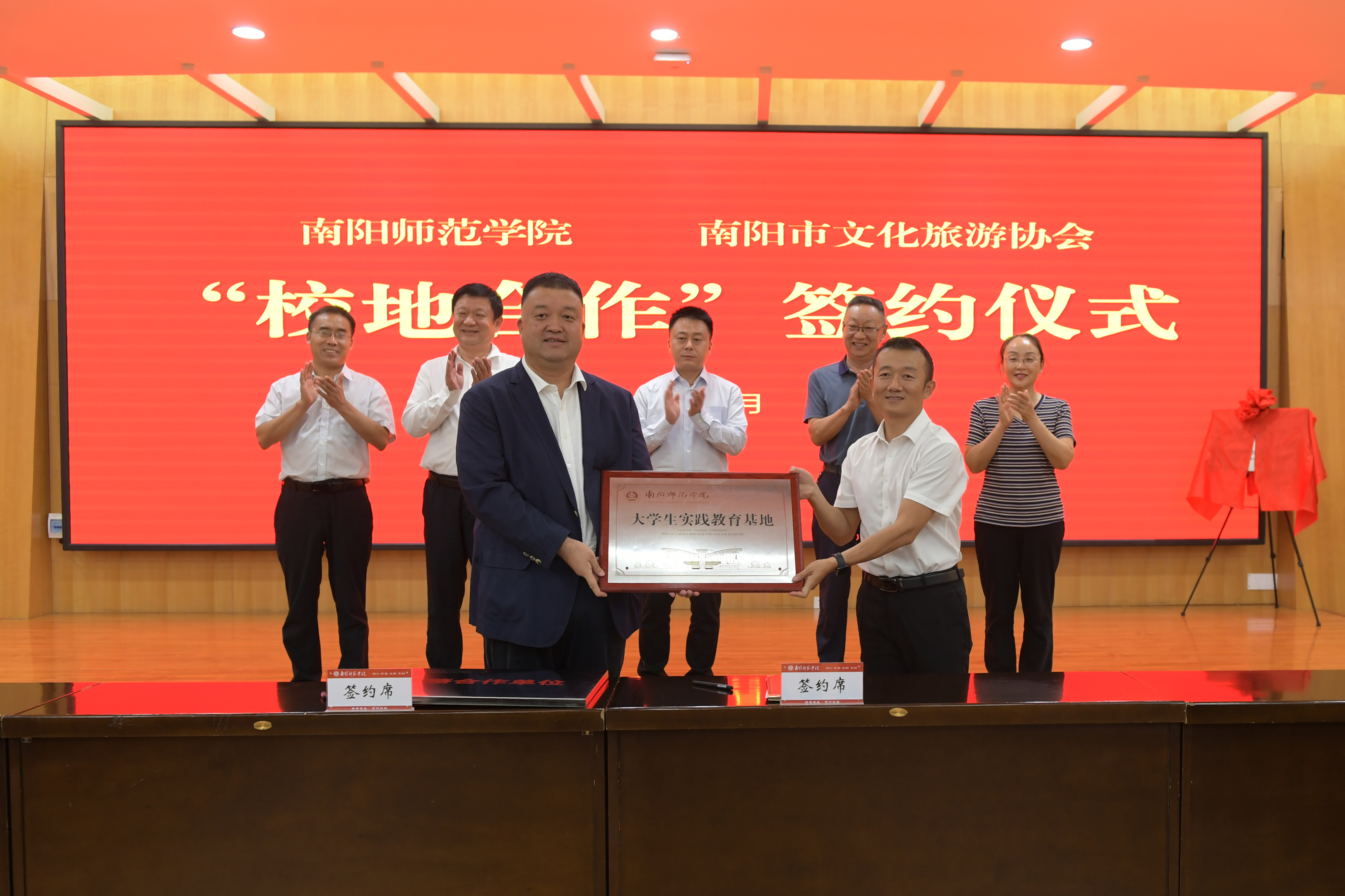新葡萄官网地理科学与旅游学院与南阳市文化旅游协会进行校地合作签约并相互授牌。