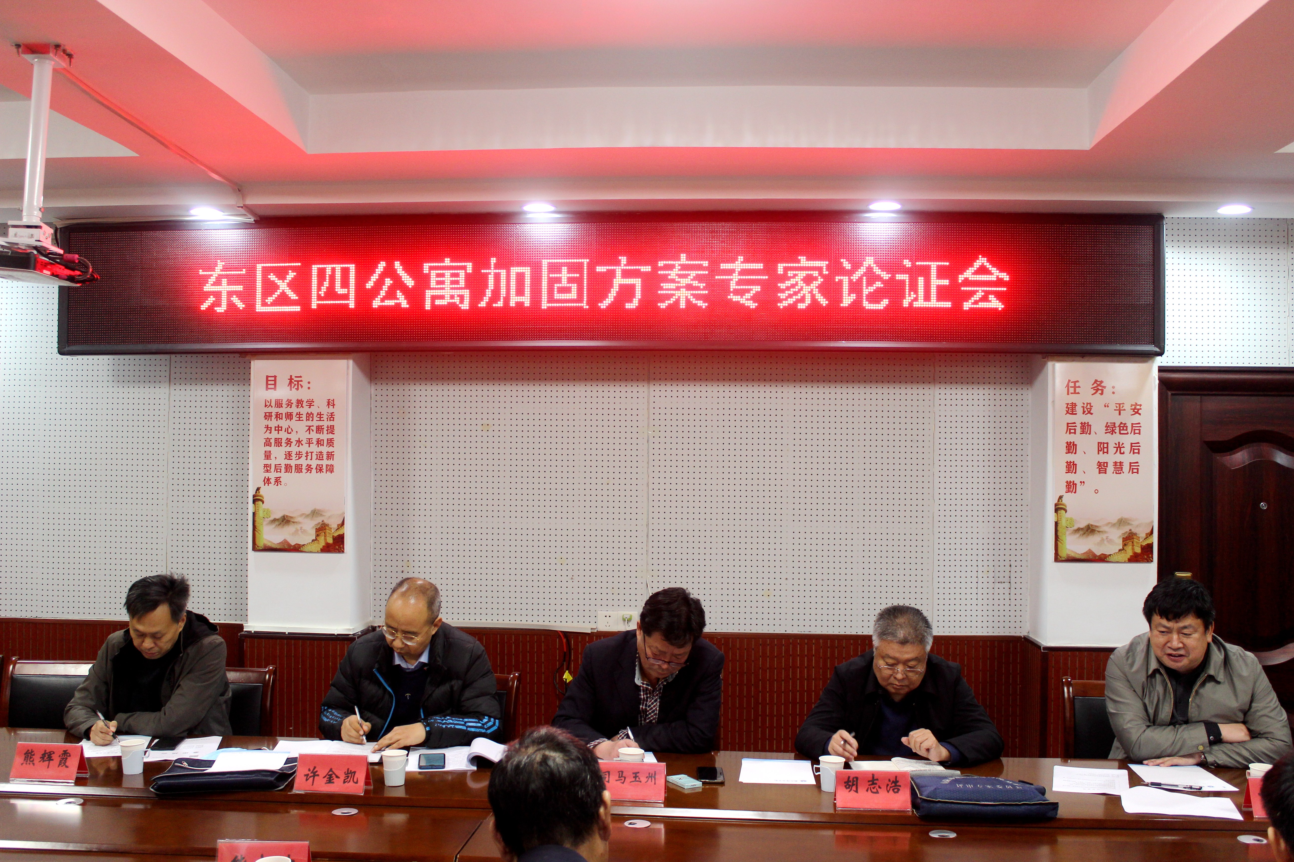 与会专家仔细踏勘了东区四公寓外围现场及室内各楼层,并详细查看了鉴定报告。根据书面资料及现场情况,经过充分论证,专家组一致认为四公寓整体情况较好,建议对其进行局部加固,确保使用安全。