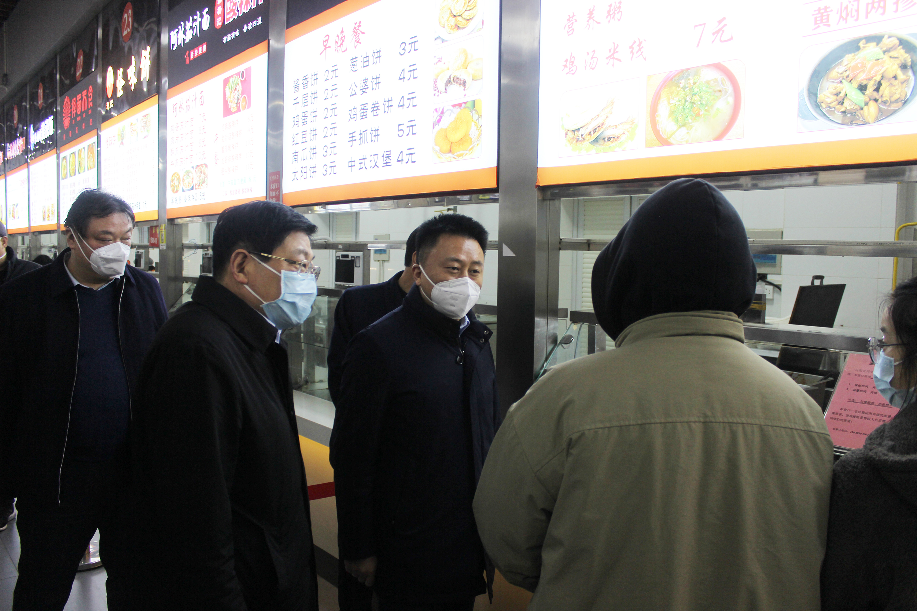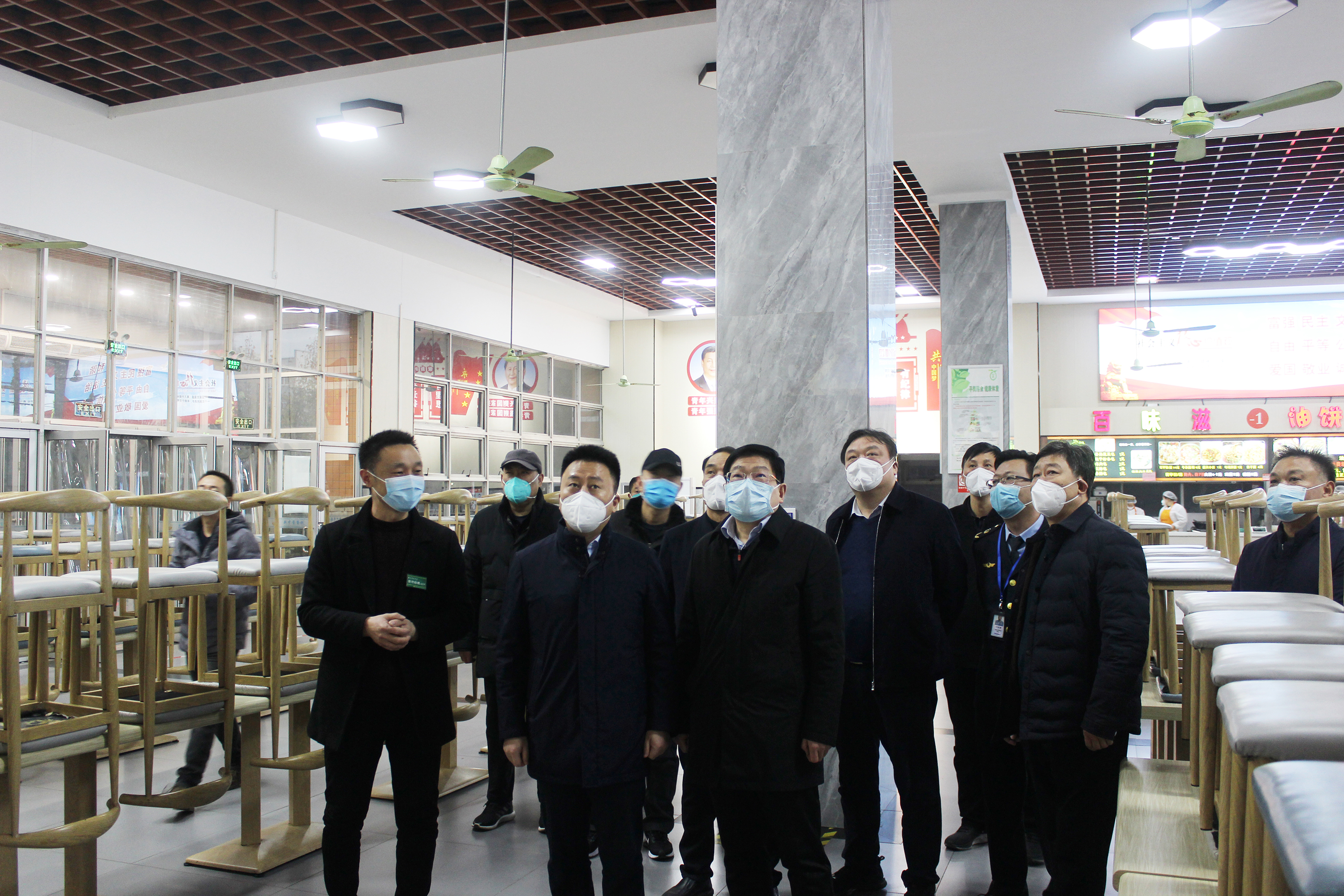 刘江认真听取了新葡萄官网关于落实食品安全主体责任体系的汇报,实地查看了中区学生食堂的各个档口、配菜间、操作间、洗消间、饭菜价格、学生就餐环境等,针对食堂操作流程记录、食品成品留样、原料购进台账、食堂疫情防控台账等工作进行了严格细致的督导检查。