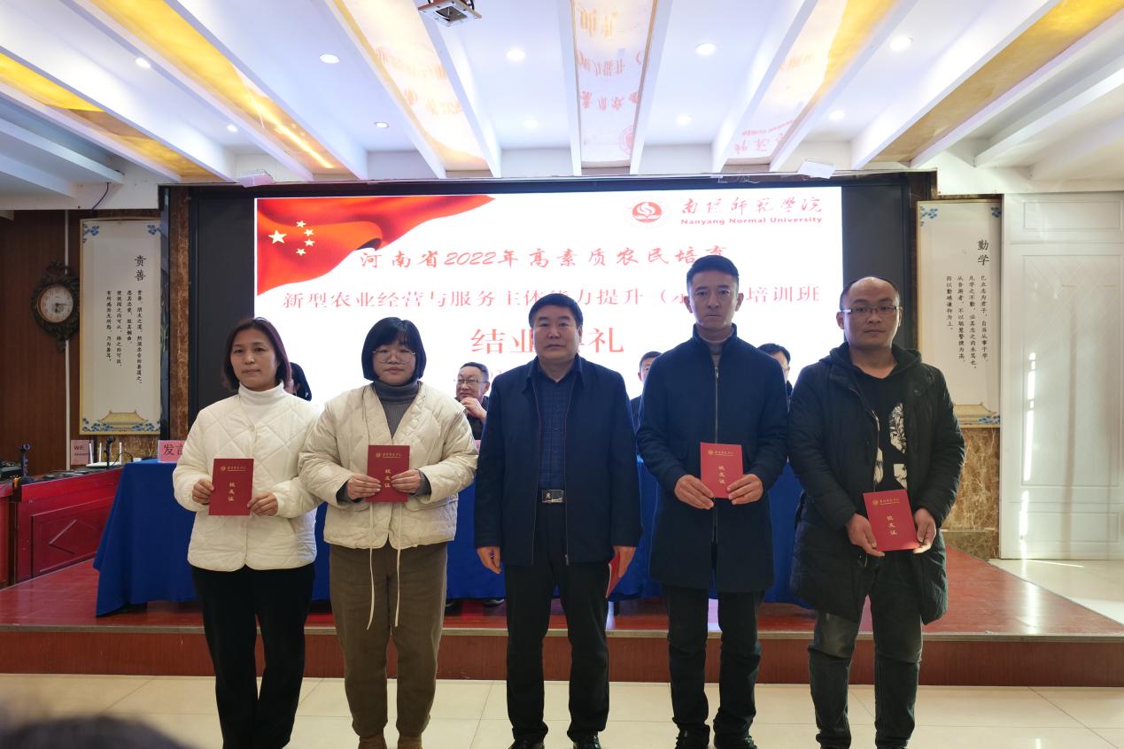 本网讯(通讯员 王坦 左卫芳 图/文)2月20日上午,由生命科学与农业工程学院承办的2022年河南省新型农业经营与服务主体能力提升(示范)第二期培育班结业典礼在南岸明珠酒店会议厅举行。新葡萄官网副校长周旗,南阳市农业农村局副局长张修峰,生命科学与农业工程学院、校友办负责同志及全体学员参加。
