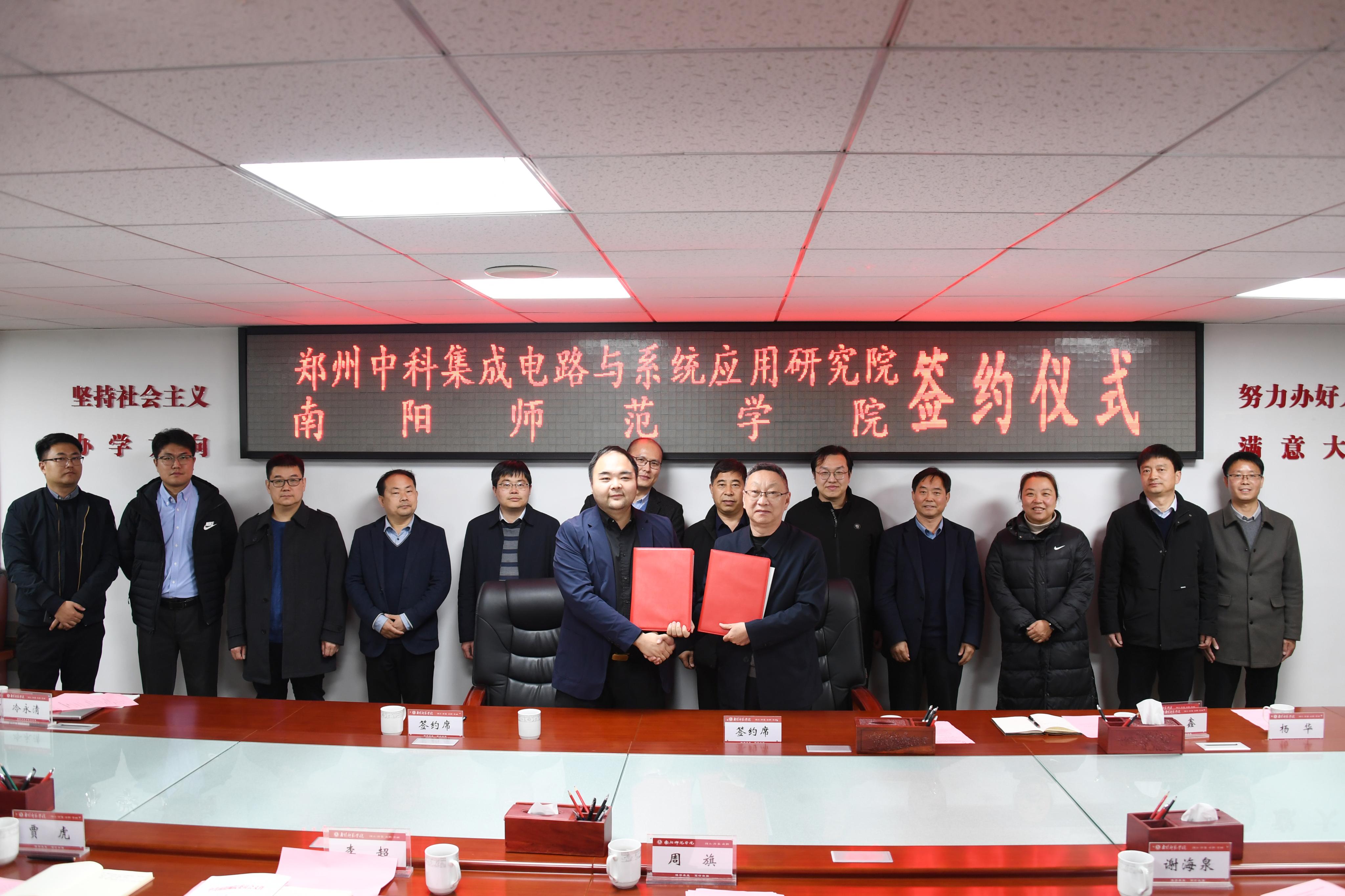 本网讯(赵清韬 惠明/文 杨毅鑫 姜智源/图)3月16日下午,新葡萄官网与郑州中科集成电路与系统应用研究院(简称研究院)校企合作签约暨授牌仪式在办公大楼三楼会议室举行。研究院院长邱昕一行及南阳市科技局相关科室负责人,新葡萄官网副校长周旗出席签约仪式。教务处、科技处、创新创业学院、机电工程学院、计算机科学与技术学院、纳米器件与系统集成研究院等相关负责同志参加。仪式由校企合作办公室主任李超主持。