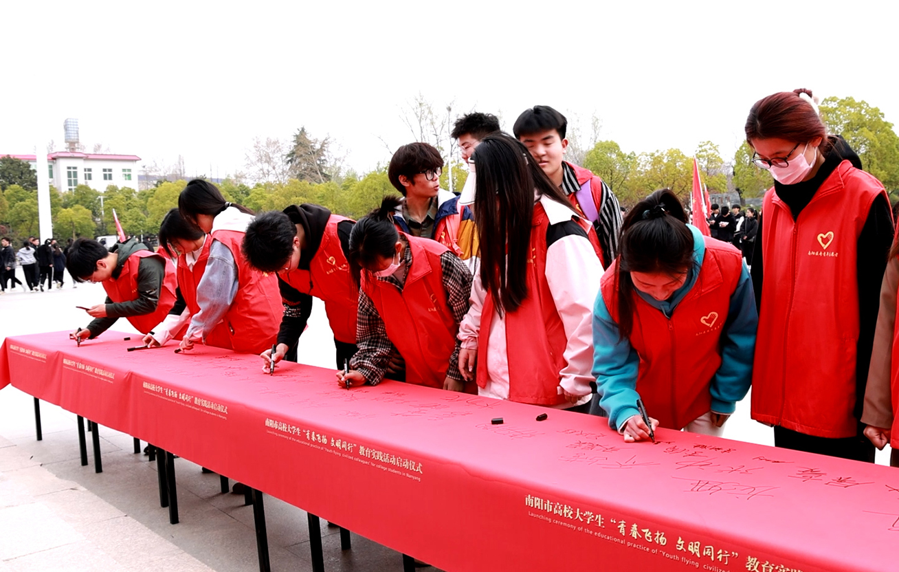 活动结束后,与会人员依次在横幅上签名承诺,表示要积极参与各类文明实践活动,提升文明素质,养成文明习惯,争做新时代优秀大学生。(编审 张君明)