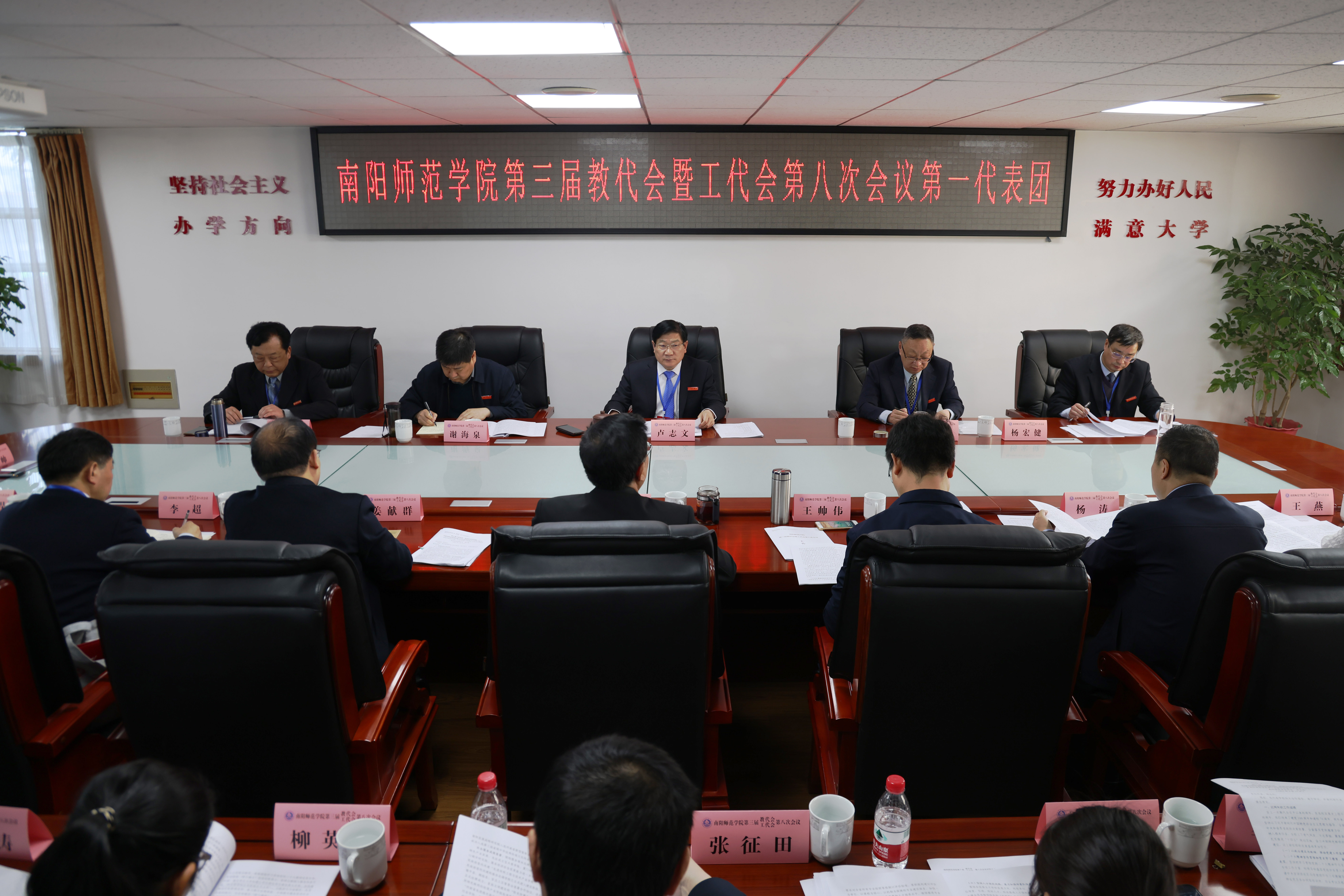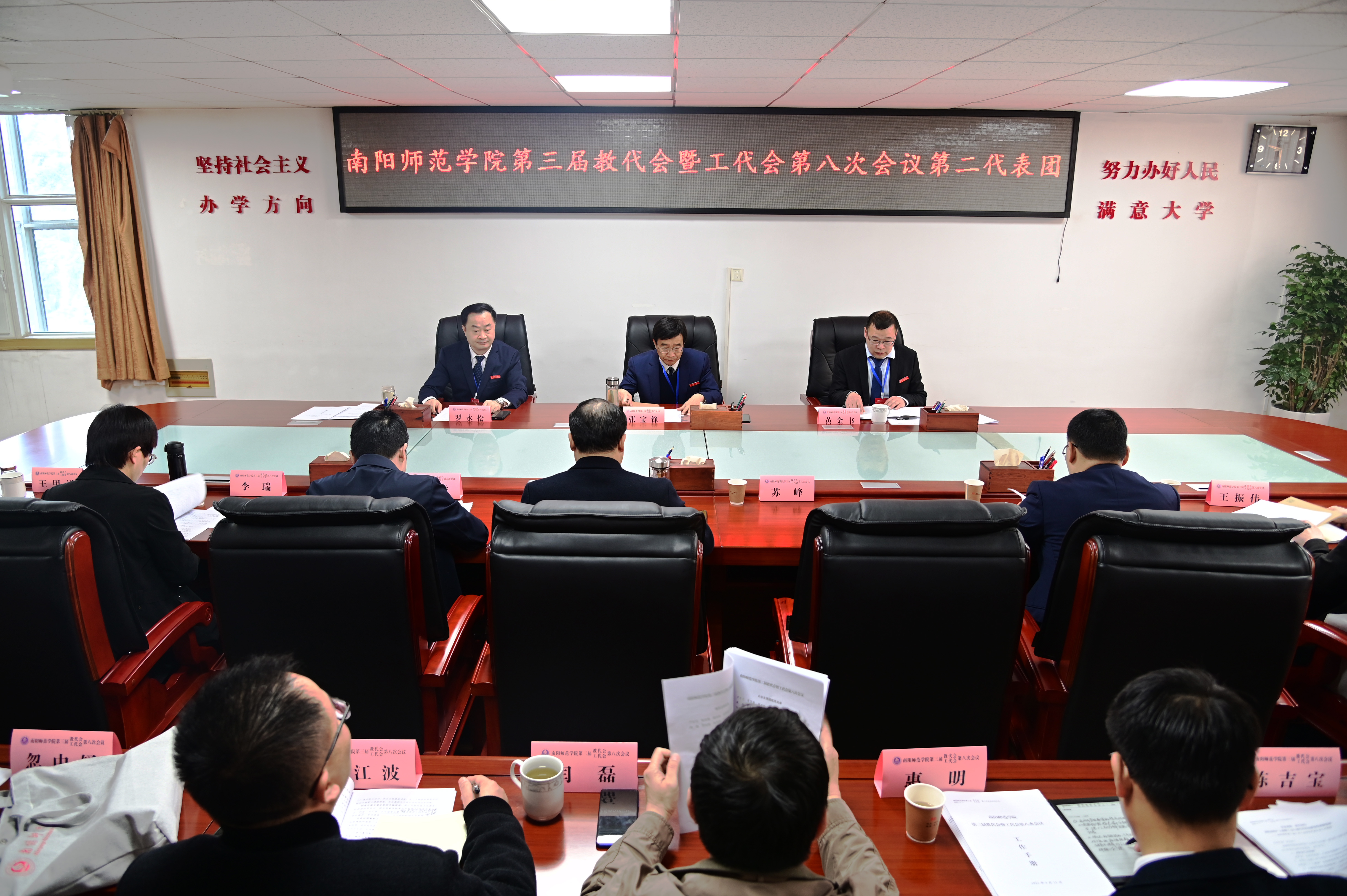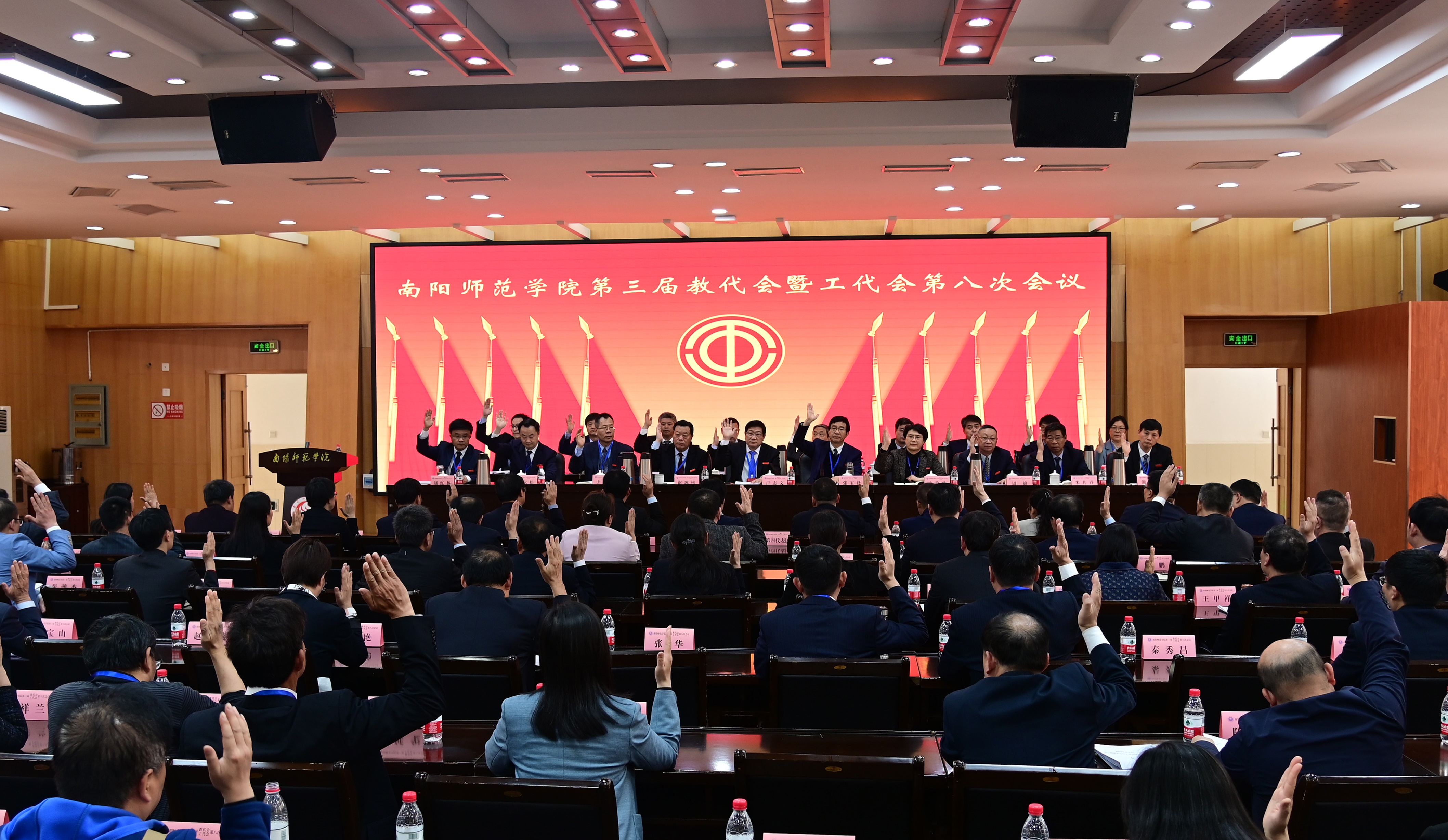本网讯(高宛莉/文 杨毅鑫 王嘉豪等/图)4月11日,新葡萄官网第三届教职工代表大会暨工会会员代表大会第八次会议在科技大楼三楼会议室召开。全体教代会代表、列席代表133人参加。大会开幕式由校党委书记卢志文主持。闭幕式由校长张宝锋主持。