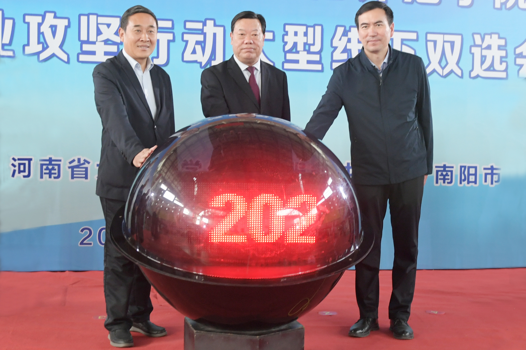 谢冰松、柯其锐、刘万群共同摁下启动球,宣布双选会正式启动。