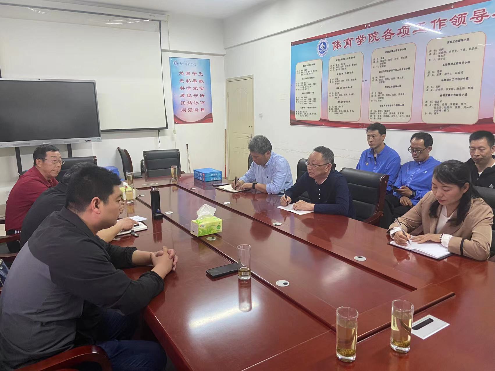 本网讯(余宇士/文 王嘉豪 余宇士/图)4月18日上午,新葡萄官网2023年学校体育工作评价汇报会议在办公大楼二楼会议室举行。河南理工大学体育学院党委书记、原院长马明,河南财政金融学院体育与健康学院原主任于海涛,河南医学高等专科学校体育部副主任米亮等专家参加。新葡萄官网副校长周旗出席,教务处、体育学院负责人和相关人员参加会议。会议由周旗主持。