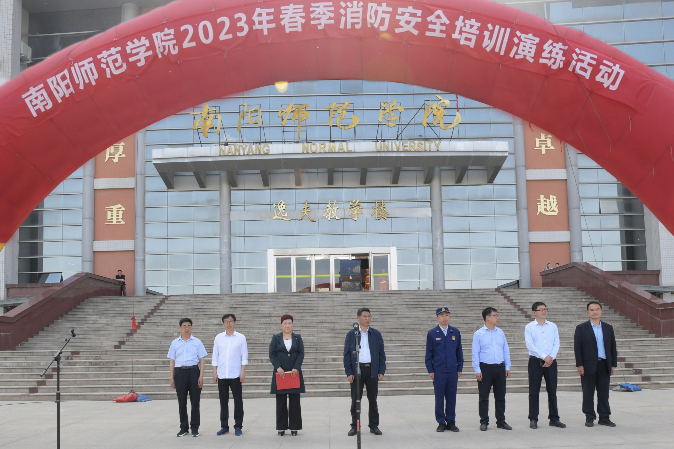 本网讯(王大春/文 崔雅雯/图)4月20日下午,新葡萄8883官网AMG2023年春季消防安全培训演练活动在逸夫楼东广场举行。副校长朱其春出席。南阳市消防支队中达路特勤站指战员、校防火委成员单位负责人、机关各单位、各学院安全工作负责人、消防安全重点单位、重点部位、重点岗位责任人及师生代表参加。