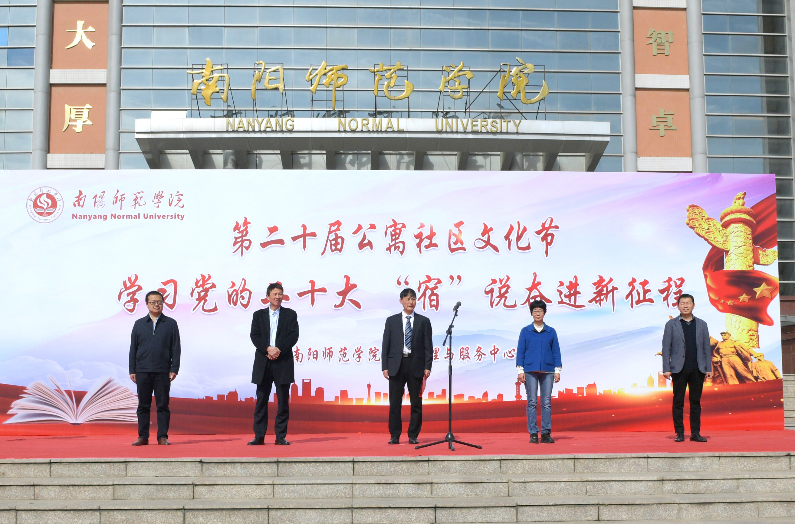 本网讯(张亚楠/文 曹艺鹏 李少峰/图)为发挥学生公寓育人阵地作用,增强公寓社区之间的交流,营造绿色安全、健康有序、互助互爱、积极愉悦的寝室氛围,4月25日上午,由后勤管理与服务中心主办的第二十届公寓社区文化节开幕式在逸夫楼东广场举行。副校长熊新忠出席开幕式,党委宣传部、学生处、校团委、后勤管理与服务中心相关负责同志,公寓老师,各学院辅导员及学生代表参加。