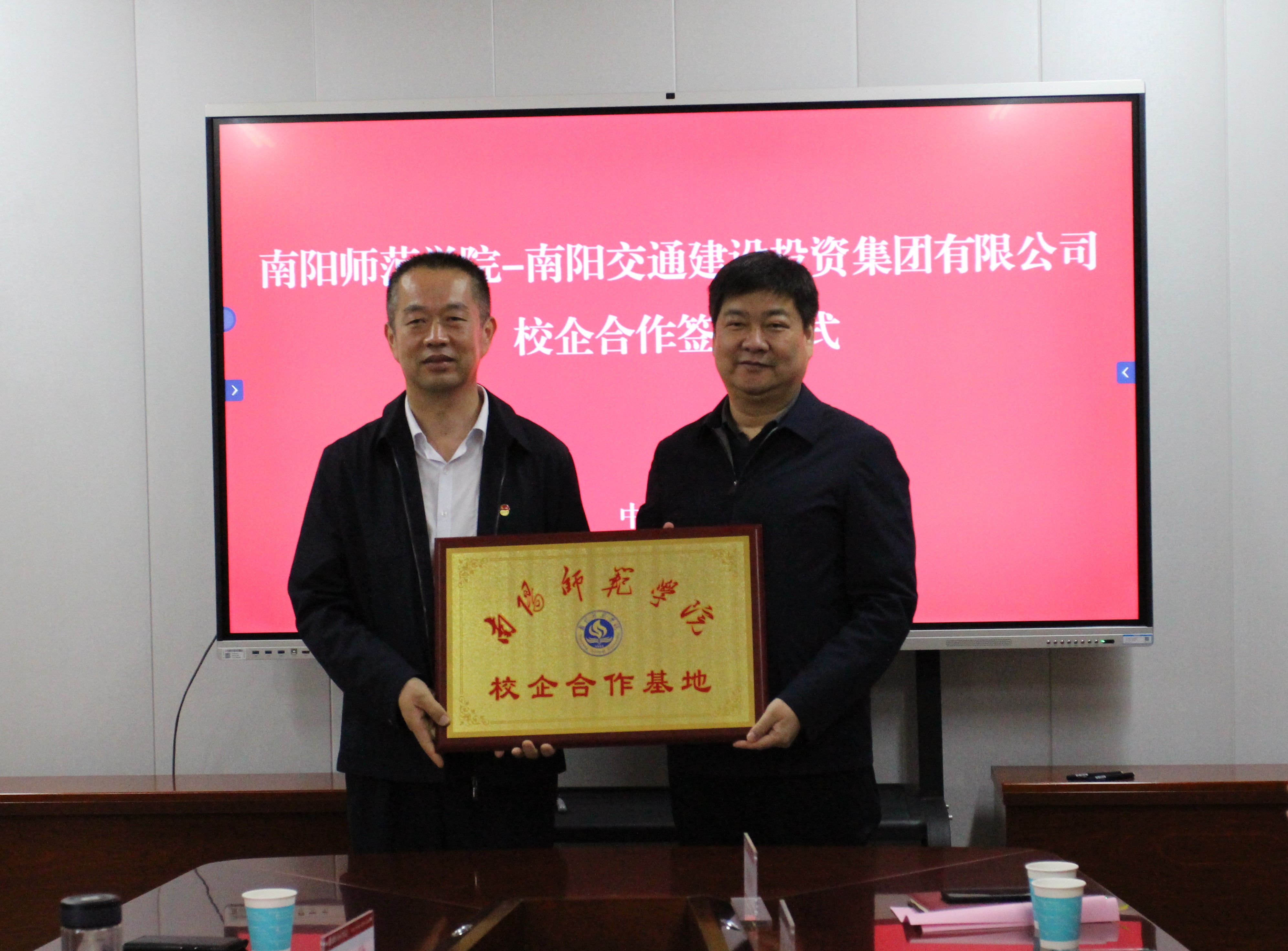 双方签署了校企合作战略协议和大学生实践教育基地协议,并授予南阳交通建设投资集团有限公司校企合作基地和大学生实践教育基地牌匾。