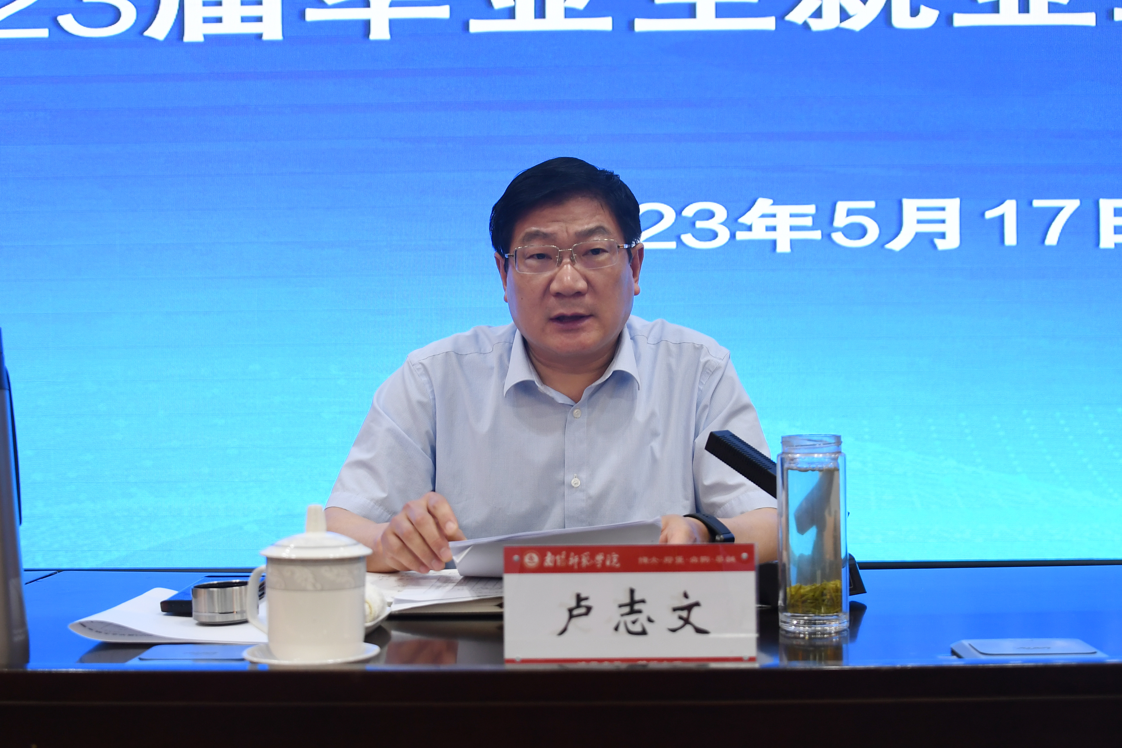 本网讯(徐照波/文 王嘉豪 崔雅雯/图)5月17日下午,新葡萄官网在科技大楼三楼会议室召开2023届毕业生就业工作推进会。校党委书记卢志文、校长张宝锋、校党委副书记谢冰松、副校长刘红林出席会议。会议由刘红林主持。就业指导与服务中心全体人员、各学院党委书记、院长、副书记、就业专干参会。