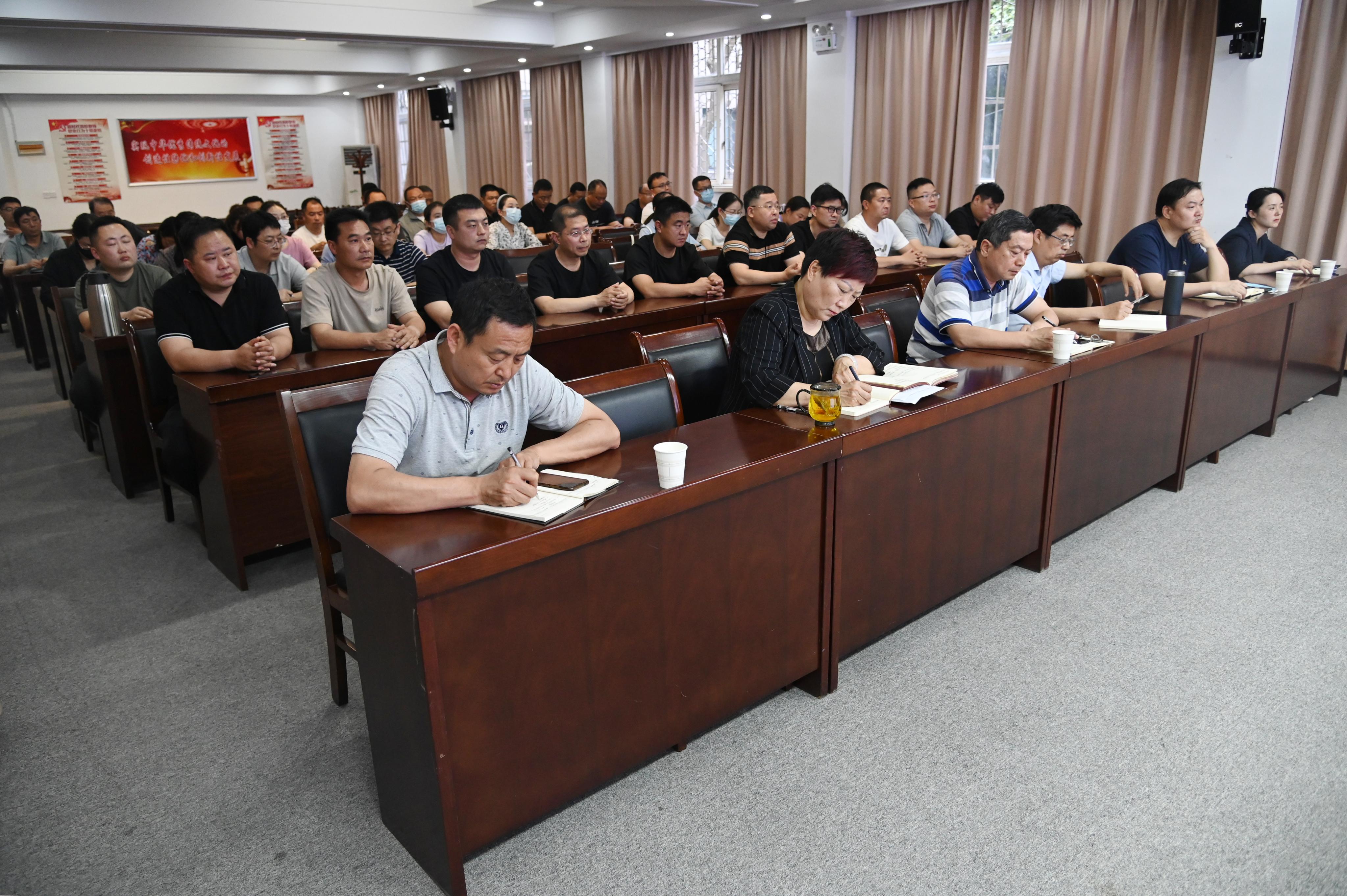 本网讯(王华根/文 杨毅鑫/图)为进一步学习贯彻习近平新时代中国特色社会主义思想,5月17日下午,副校长朱其春以“贯彻总体国家安全观,服务学校高质量发展”为题目,在办公大楼一楼东会议室为保卫处、基建处、校医院全体党员同志上主题教育党课。
