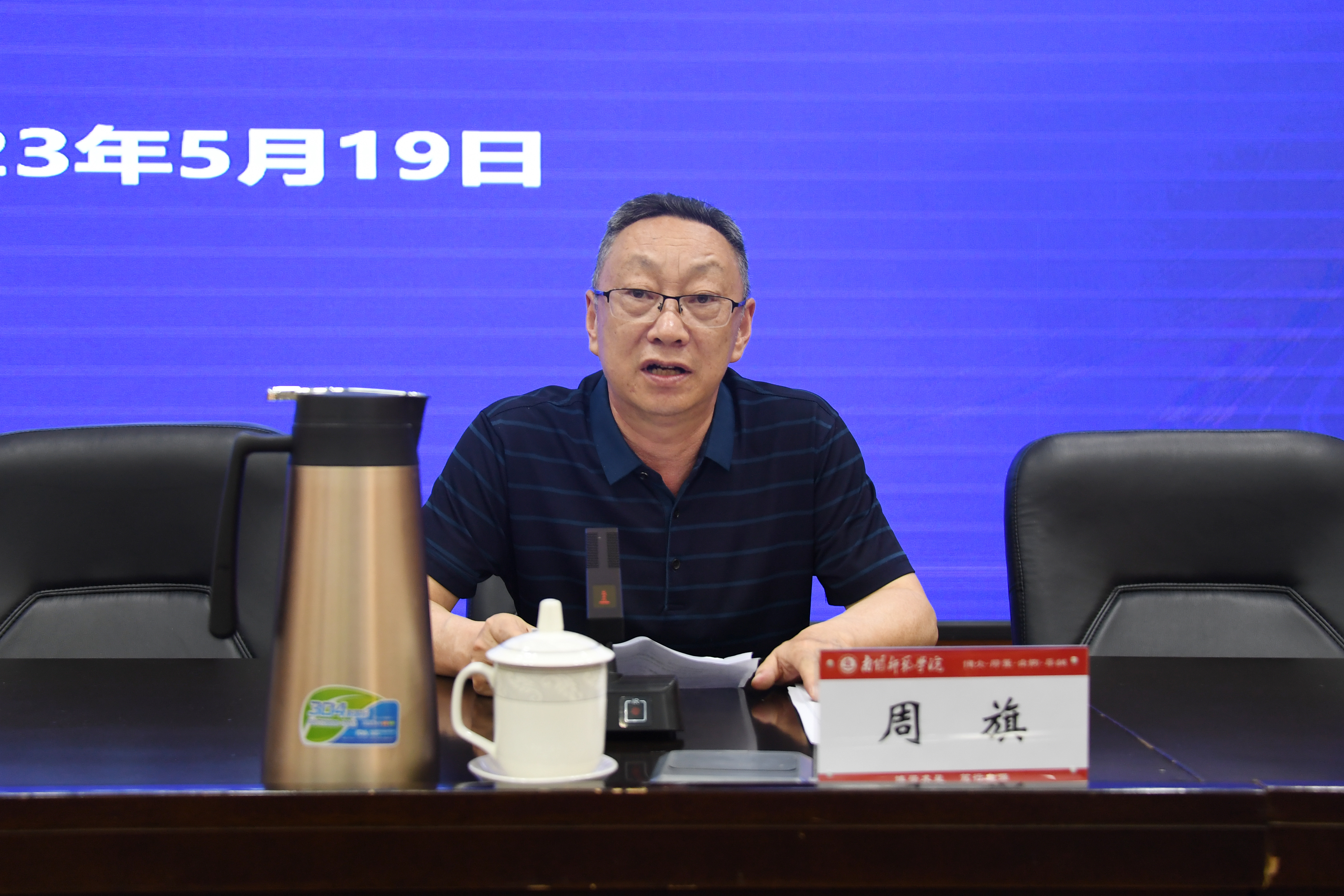 周旗传达学习了教育部《关于深化本科教育教学改革全面提高人才培养质量的意见》和《教育部办公厅关于做好“全国大学生实习公共服务平台”数据报送工作的通知》。他指出,一要改进实习运行机制,二要强化实习导师职责,三要注重实习效果,四要加强实习基地建设。