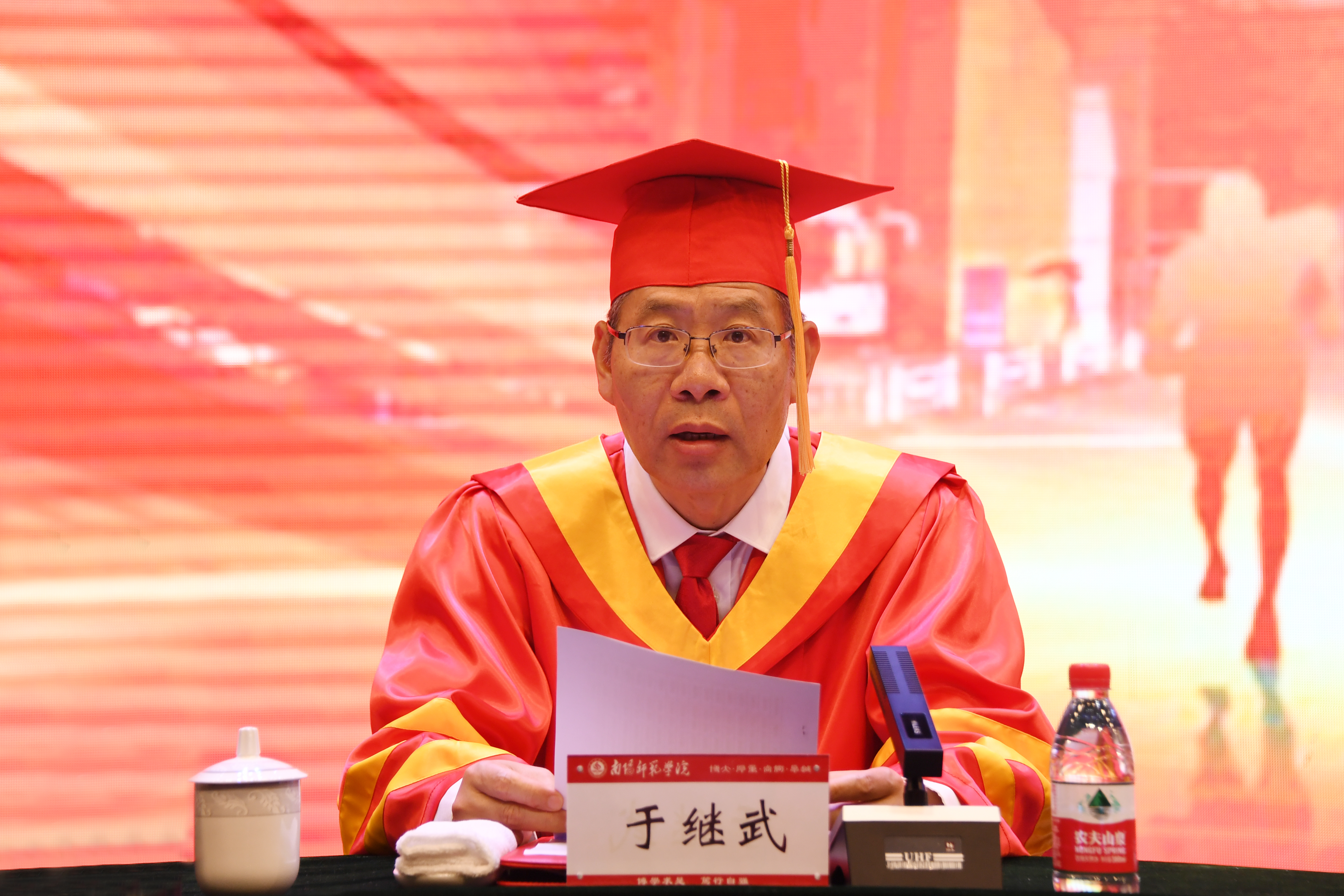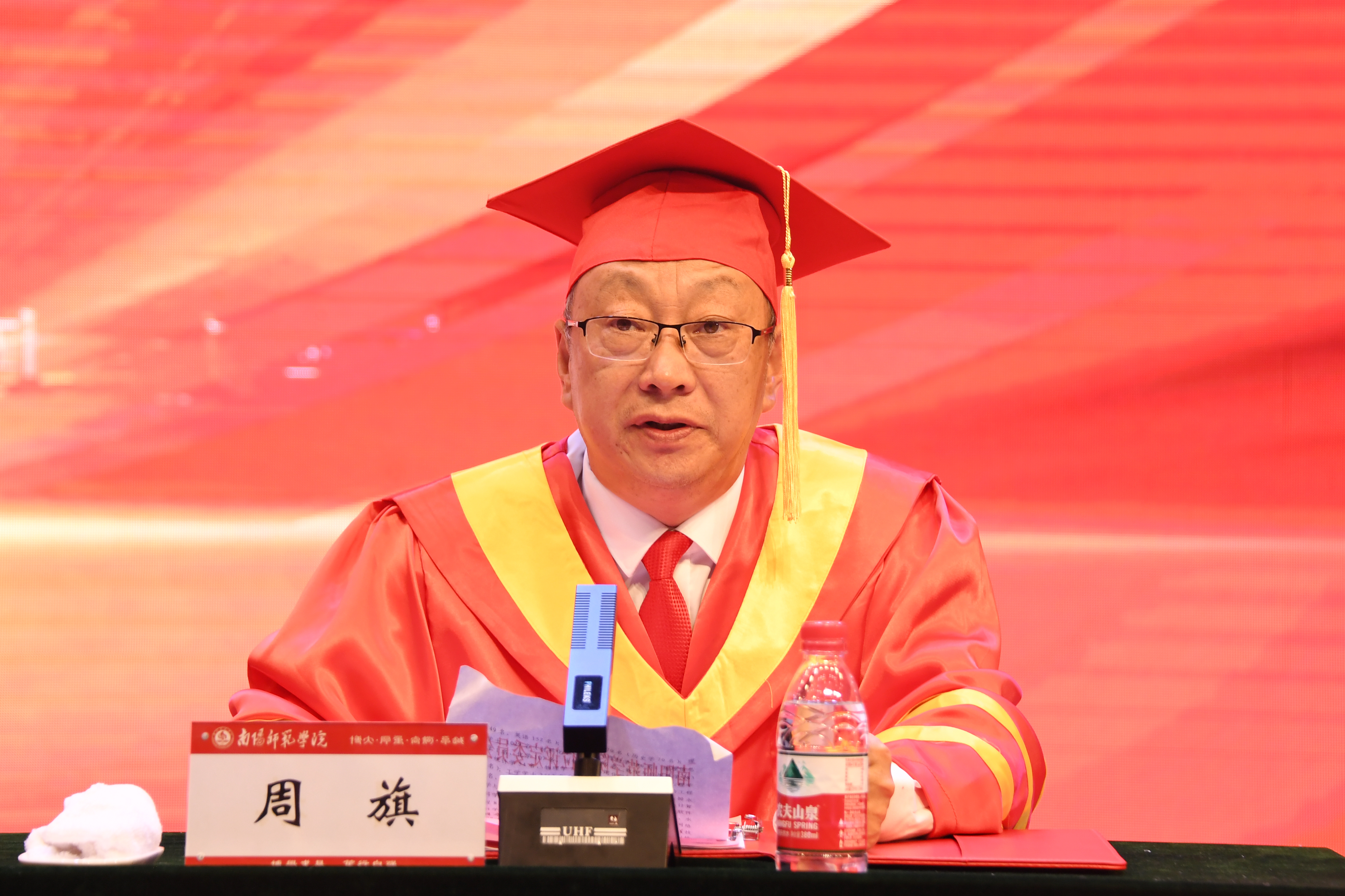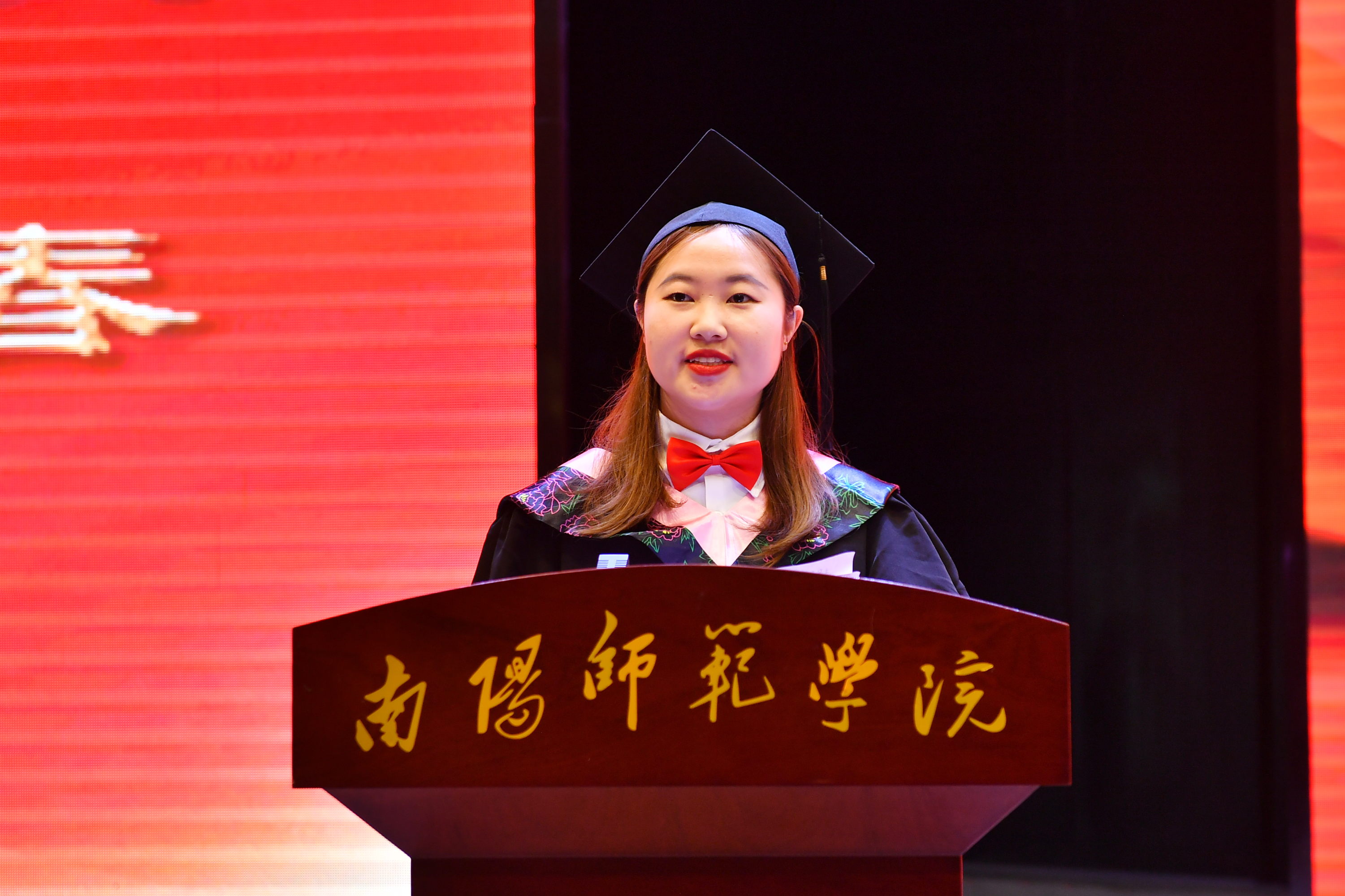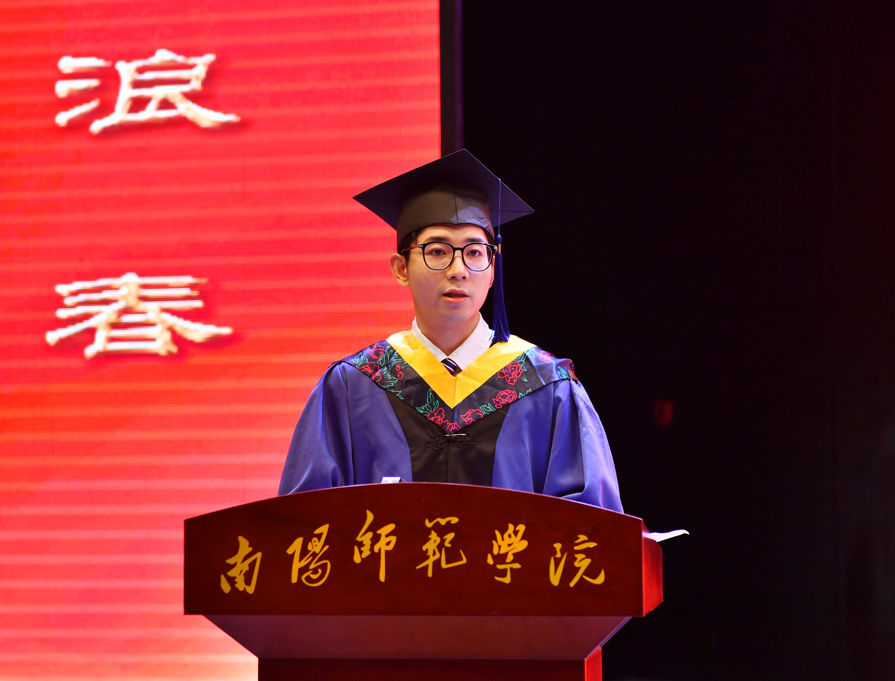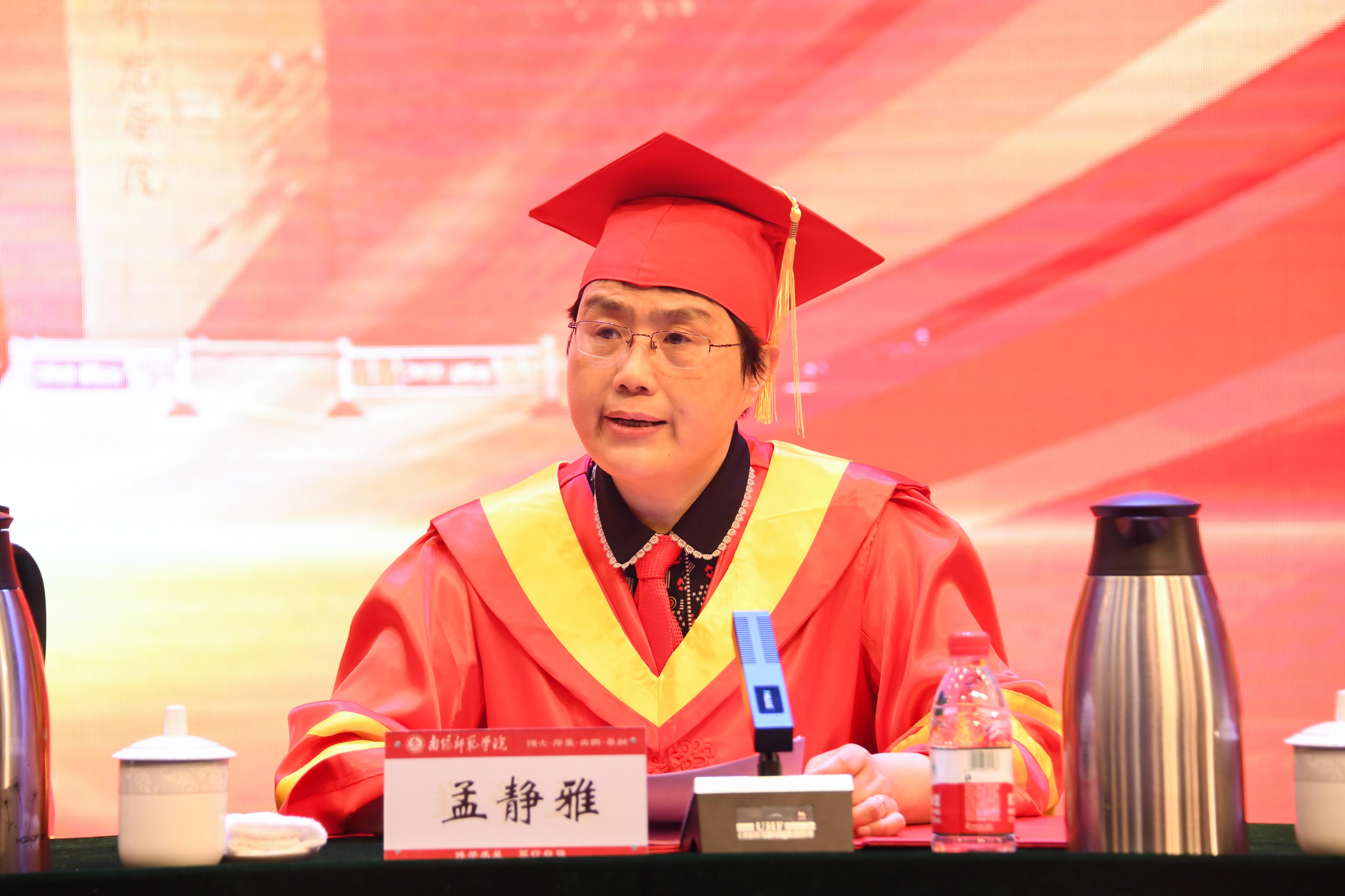 硕士研究生毕业生代表褚帅北、留学生毕业生代表郝帅、普通本科毕业生代表王依凡分别发言,回顾大学生活点滴,表达对母校、师长的真挚感谢和对同学们的衷心祝福。教师代表、教育科学学院院长李辉发言,向毕业生致以祝福,鼓励他们坚定信心、勇毅前行。