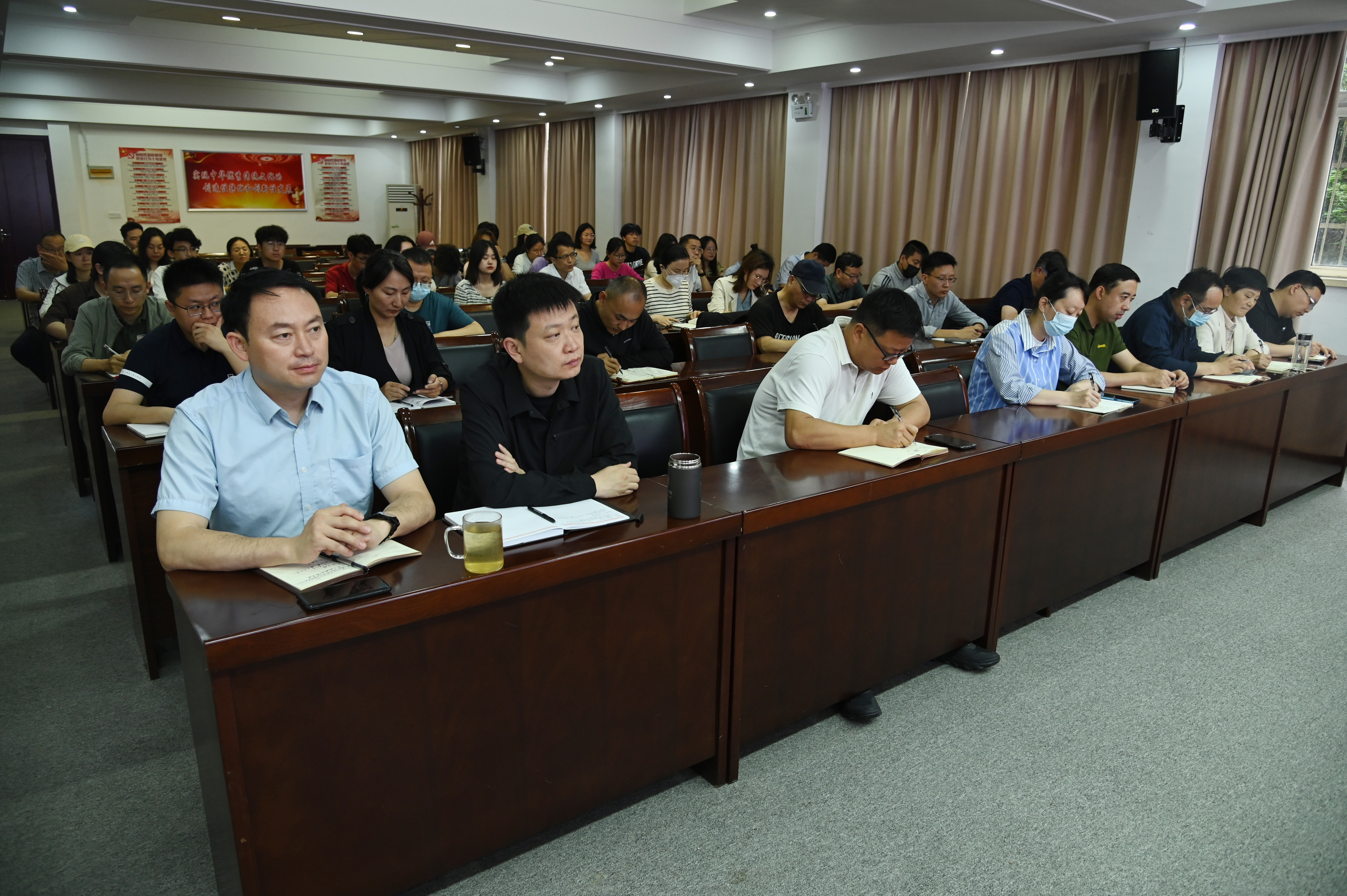 本网讯(王一鸣/文 曹艺鹏/图)5月31日下午,校长张宝锋在办公大楼一楼东会议室作题为《深化高等教育内涵建设,助力实施科教兴国战略、人才强国战略和创新驱动发展战略》的习近平新时代中国特色社会主义思想主题教育专题党课。院长办公室、校友办、审计处、法学院、水资源与环境工程学院的党员干部和师生代表参加党课。专题党课由院长办公室主任冷枫主持。