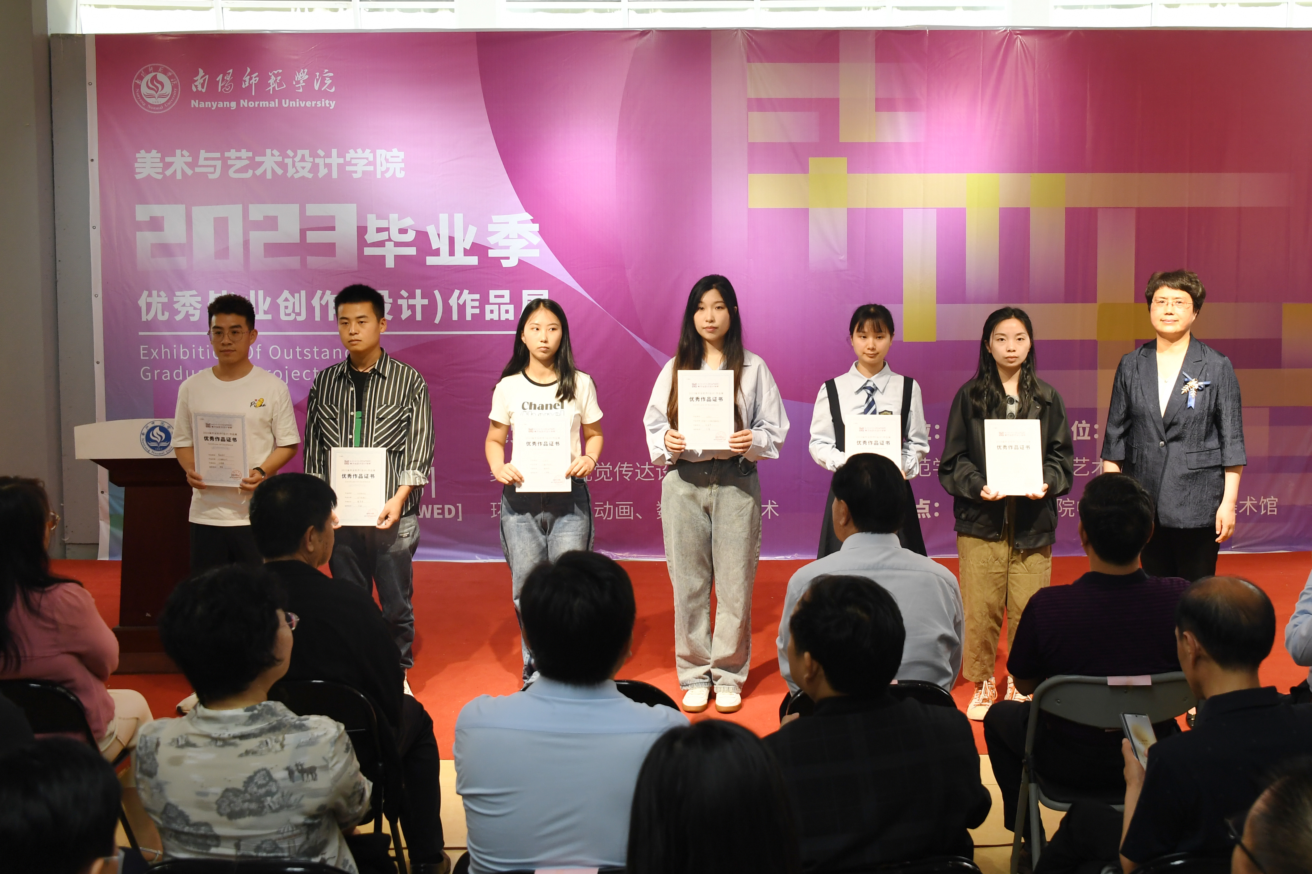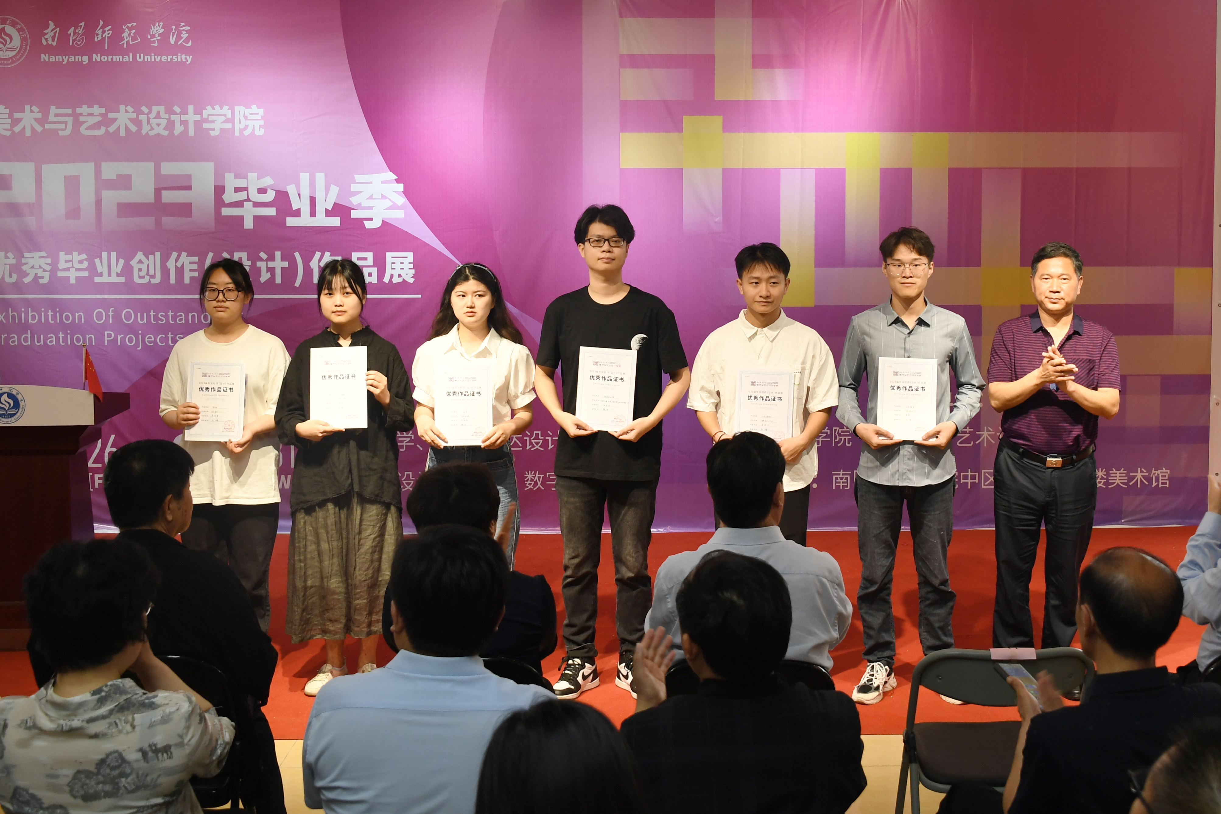 据悉,本次展览展出美术与艺术设计学院2023届五个本科专业749名毕业生创作中的150幅优秀作品。作品以多元化的视角、丰富的艺术形式,集中展示了美术与艺术设计学院学生服务社会、关注生活的创作态度,坚持扎根传统,突出地域文化特色,集中展现了南阳师院美术与艺术设计学院人才培养质量与特色教学成果。(编审 张君明)