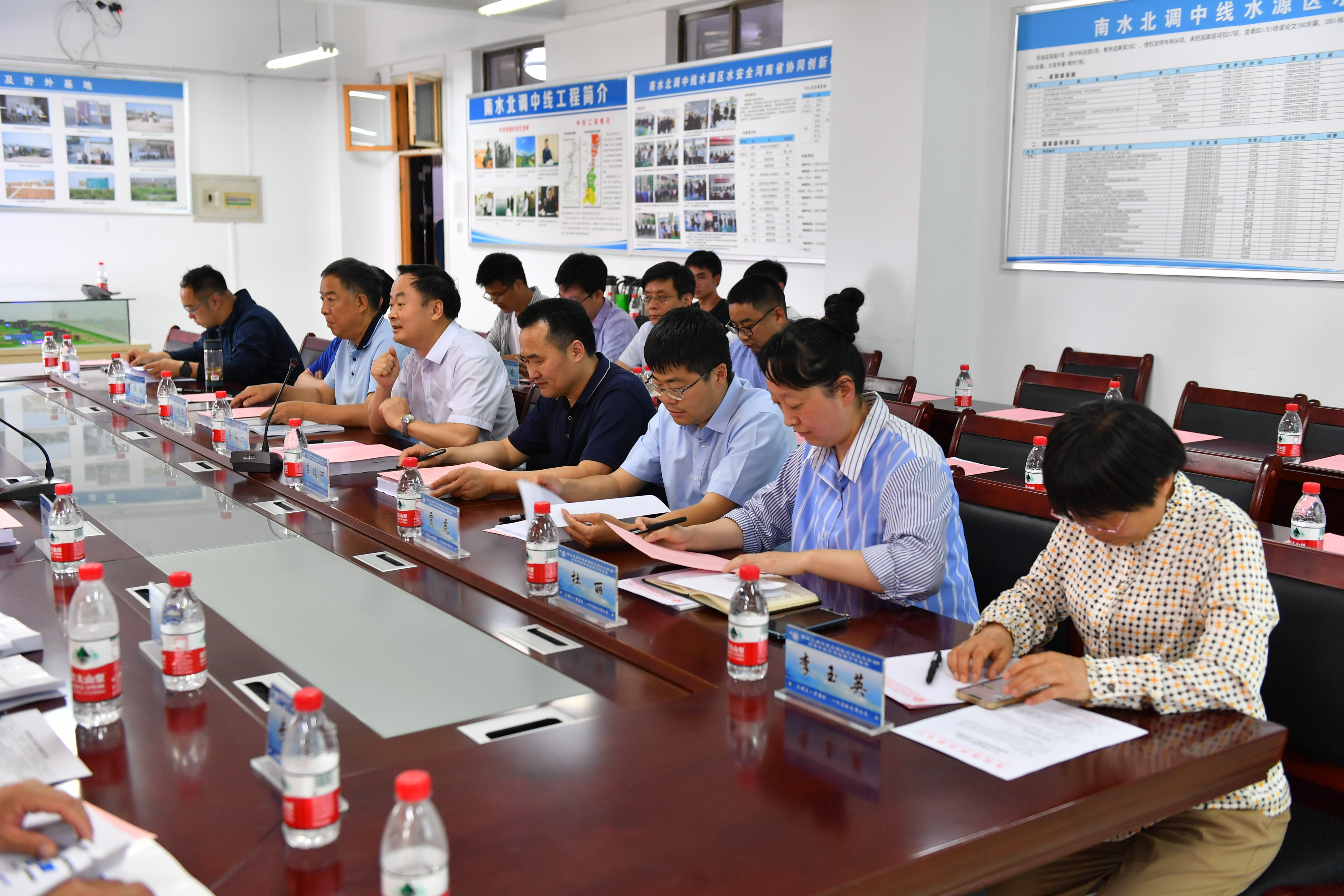 “南水北调中线水源区水安全保障技术河南省高等学校学科创新引智基地验收汇报会”在协同创新中心会议室召开。汇报会由张天运主持。