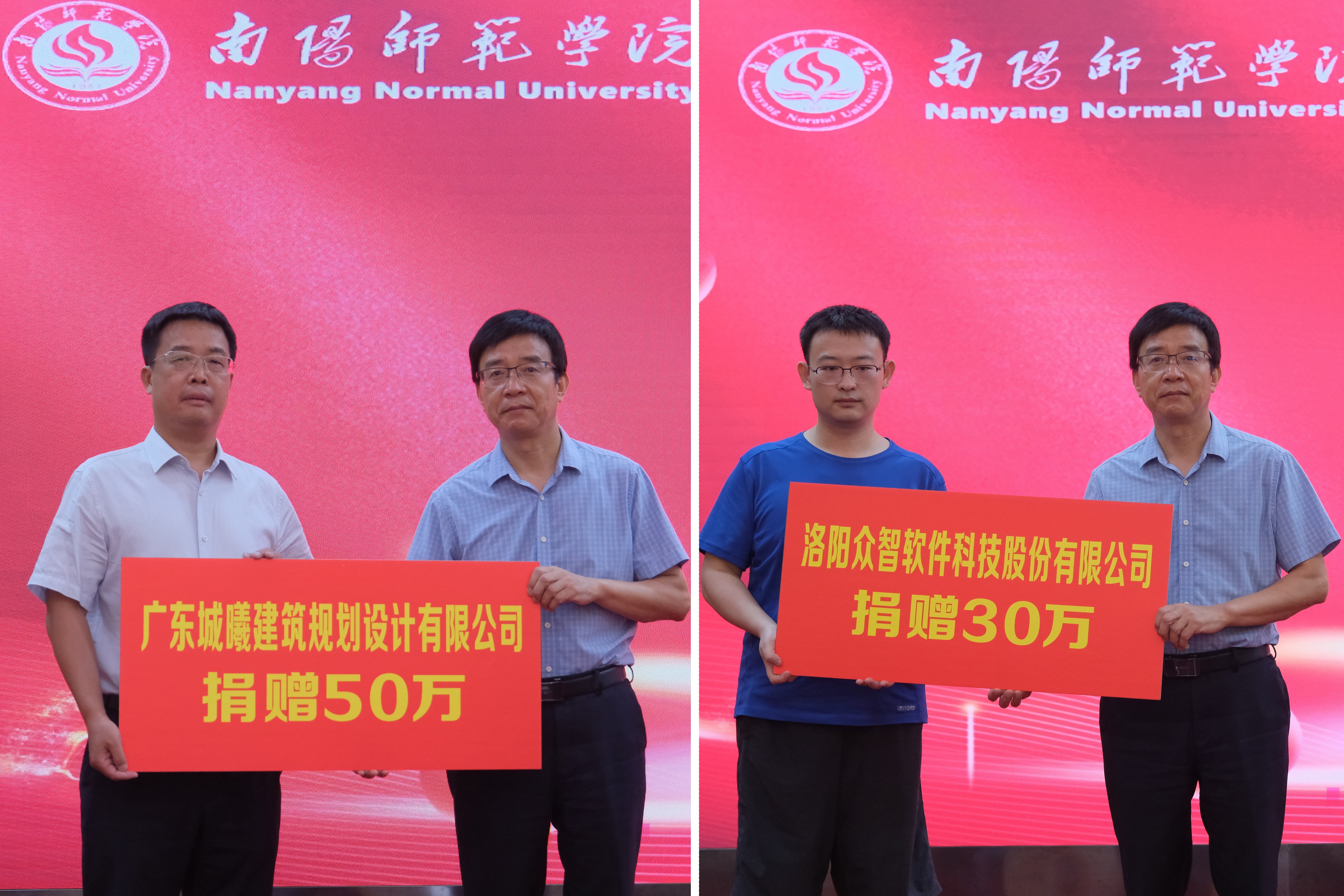 洛阳众智软件科技股份有限公司向学校捐赠30万元,广东城魔建筑规划设计有限公司捐赠50万元。