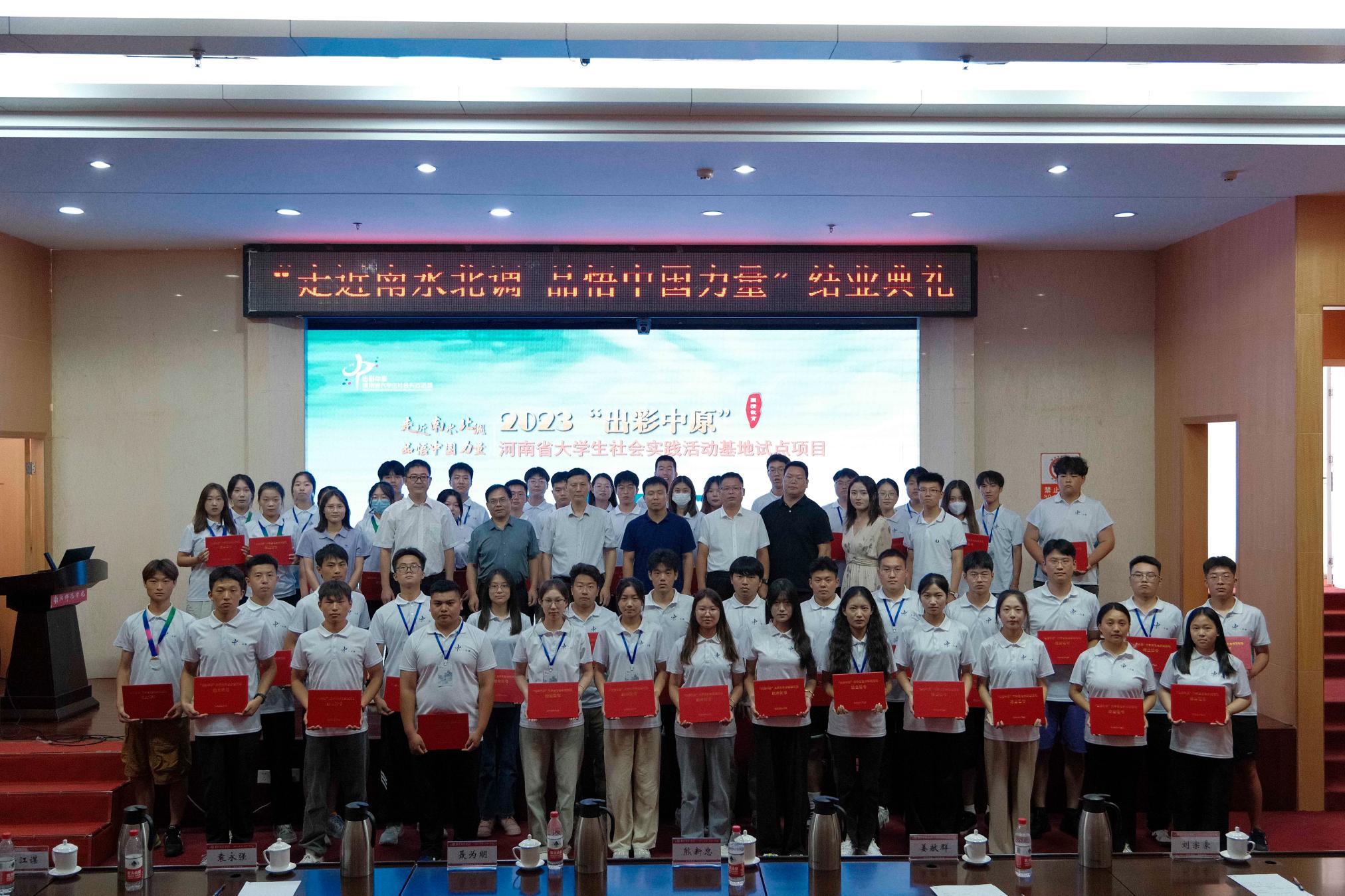 本网讯(陈欣 徐曼曼/文 田野 王明理/图)8月19日上午,2023年河南省“出彩中原”大学生社会实践活动基地试点项目——“走近南水北调 品悟中国力量”社会实践活动圆满结束。结业典礼在新葡萄8883官网AMG图书馆报告厅举行。新葡萄8883官网AMG副校长熊新忠,校心理健康教育与咨询中心党总支书记姜献群、校团委书记袁永强出席。学生处全体成员、师生代表及全体学员参加。典礼由学生处副处长薛江谋主持。