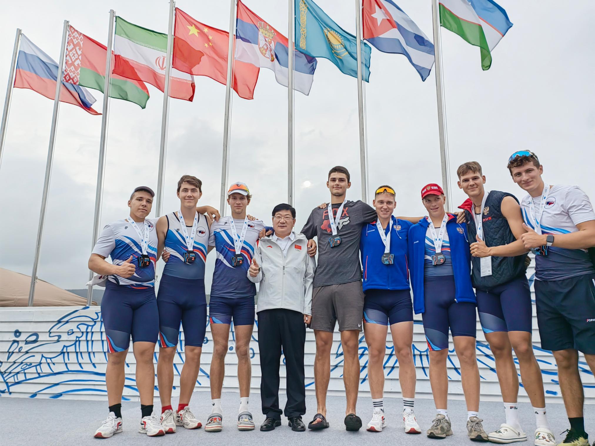 本网讯(通讯员 王满 图/文)9月10日--13日,受俄罗斯赛艇协会邀请、我国国家体育总局水上运动管理中心指派,学校党委书记卢志文带领新葡萄官网大学生赛艇队代表中国参加在俄罗斯符拉迪沃斯托克(海参崴)举办的国际赛艇比赛,教练员、体育学院党委书记雷波、实验室主任王满一同前往。来自中国、俄罗斯、白俄罗斯、哈萨克斯坦、乌兹别克斯坦、塞尔维亚、伊朗、古巴等9个国家的86名赛艇运动员参赛,新葡萄官网代表队共5人(体育学院运训专业2022级黄利、丁相凯、马奕涵、赵佳鑫、2020级刘泽祥)参加了水上和陆上四个项目的角逐。经过三天的激烈竞争,在男子单人双桨500米竞速项目中,黄利、丁相凯、马奕涵分别获得第4名、第6名、第10名;男子双人双桨500米竞速项目中,丁相凯/赵佳鑫、黄利/刘泽祥分别获得第5名、第6名;在成年组测功仪项目中,赵佳鑫、丁相凯分别获得第8名、第12名,U19测功仪项目中,黄利获得第13名。虽然其他国家运动员大多为现役国家队运动员,但新葡萄官网大学生不畏强手,顽强拼搏,被授予本次比赛集体拼搏奖。俄罗斯奥委会主席助理安德利、赛艇协会主席阿利克斯、2004年雅典奥运会赛艇项目冠军伊格一起为新葡萄官网代表队颁发拼搏奖,卢志文受邀为比赛开闭幕式致辞并为其他国家获奖运动员颁奖。