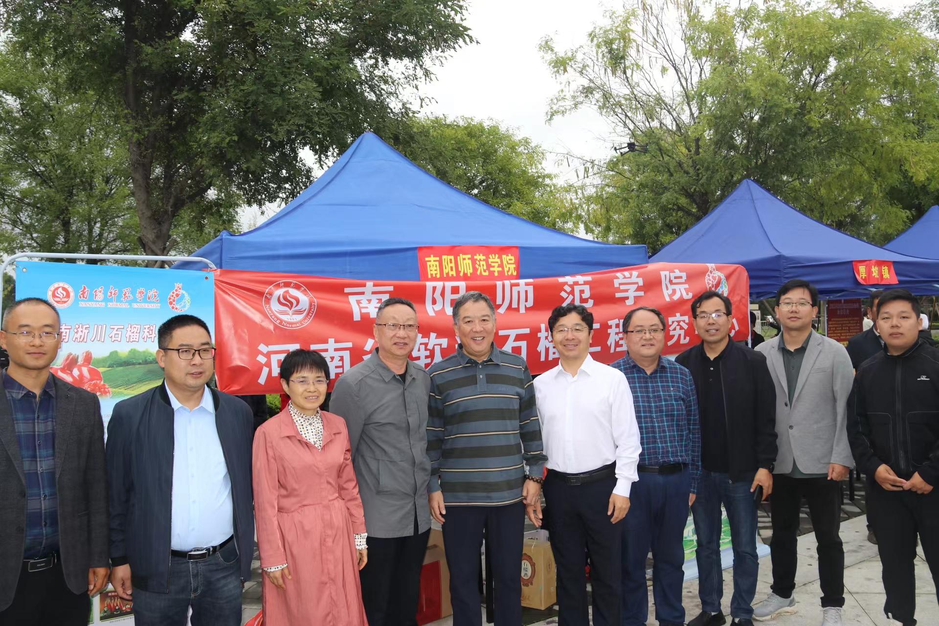本网讯(通讯员 王荣欣 图/文)9月25-27日,中国(南阳)石榴产业技术发展大会暨淅川县(九重镇)第二届石榴节在淅川县九重镇举行。新葡萄官网副校长周旗,科技处、水资源与环境工程学院“南水北调中线水源区流域生态安全高等学校学科创新引智基地”(111基地)有关负责同志参加。本次活动的主题是“迎国庆,庆丰收,打响石榴品牌,助力乡村振兴”。启动仪式由淅川县委副书记丁心强主持。