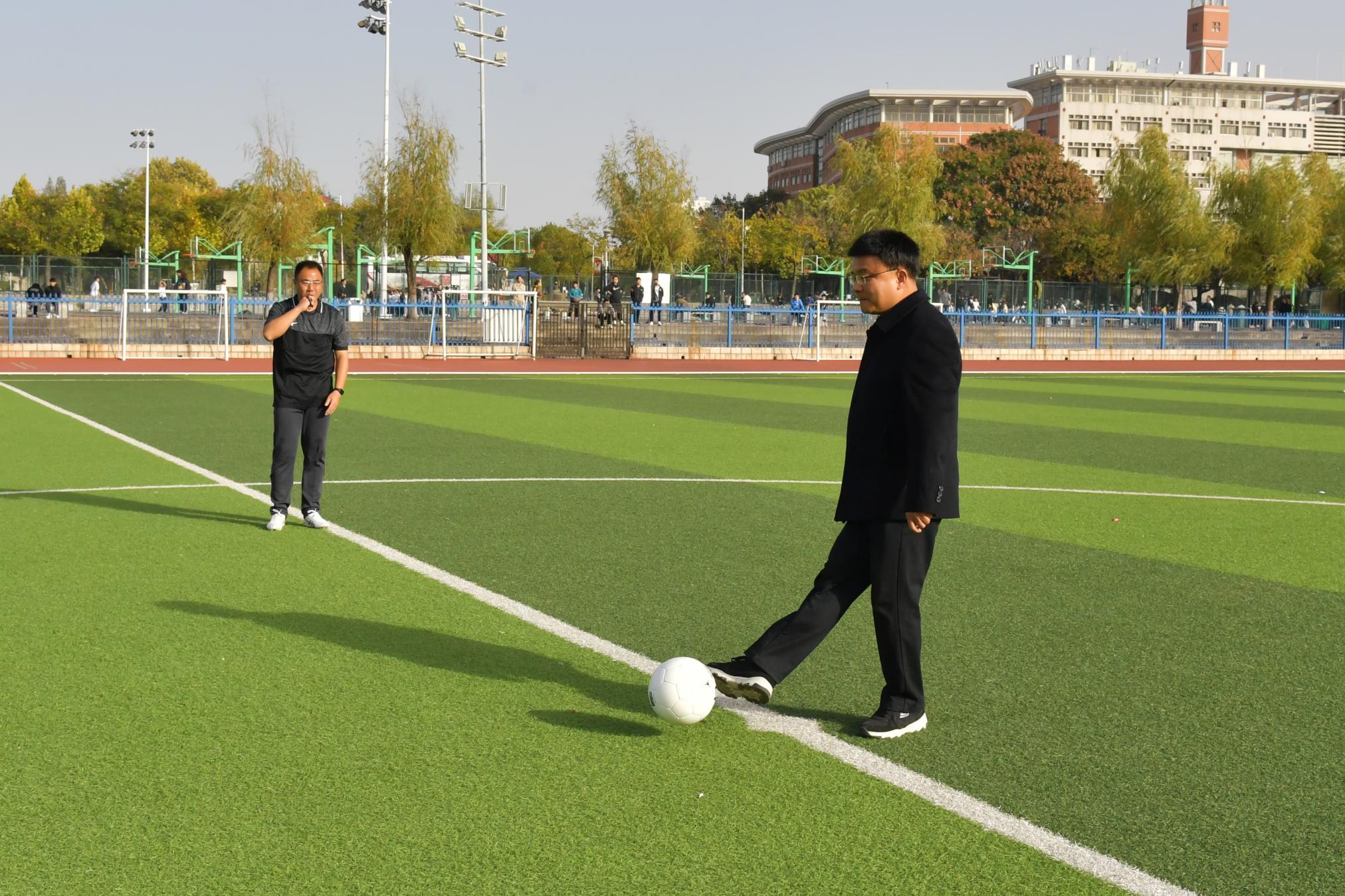本场比赛双方为新葡萄官网男子足球队与南阳理工学院男子足球队。刘红林为比赛开球。