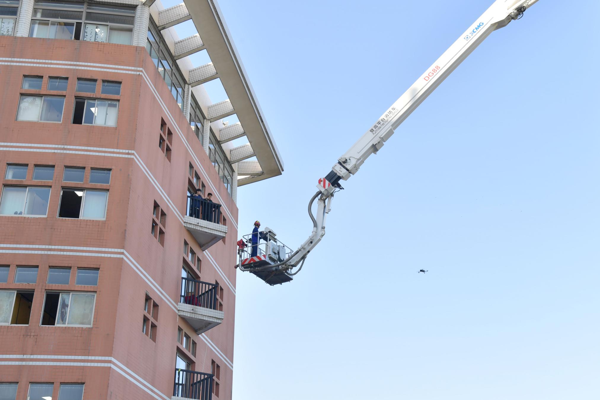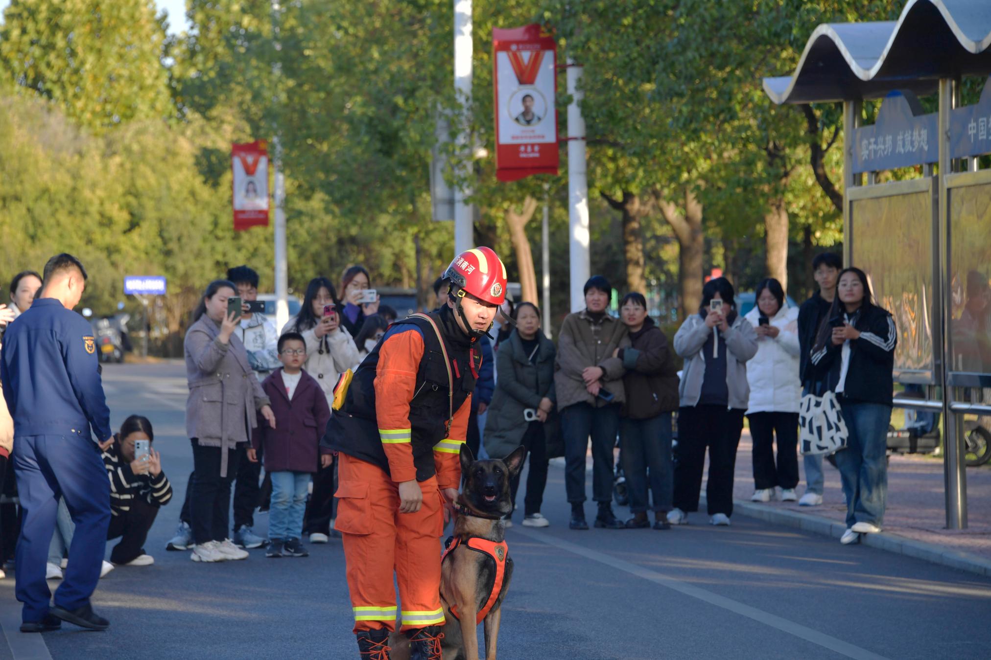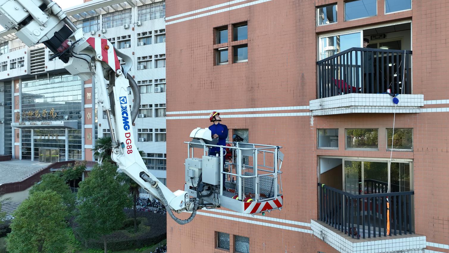 15点20分,消防演练全面展开。逸夫教学楼发生火情,被困师生一边组织自救一边拨打了119火警求救。消防救援人员通过举高消防车、缓降器等救援方式将楼上的被困者疏散到安全区域,同时实施强攻灭火。经过紧张救援,灭火及救援演练获得成功。随后,新葡萄官网又进行了消防器材装备展示、警犬搜救等展示环节。师生员工热情高涨、积极互动。